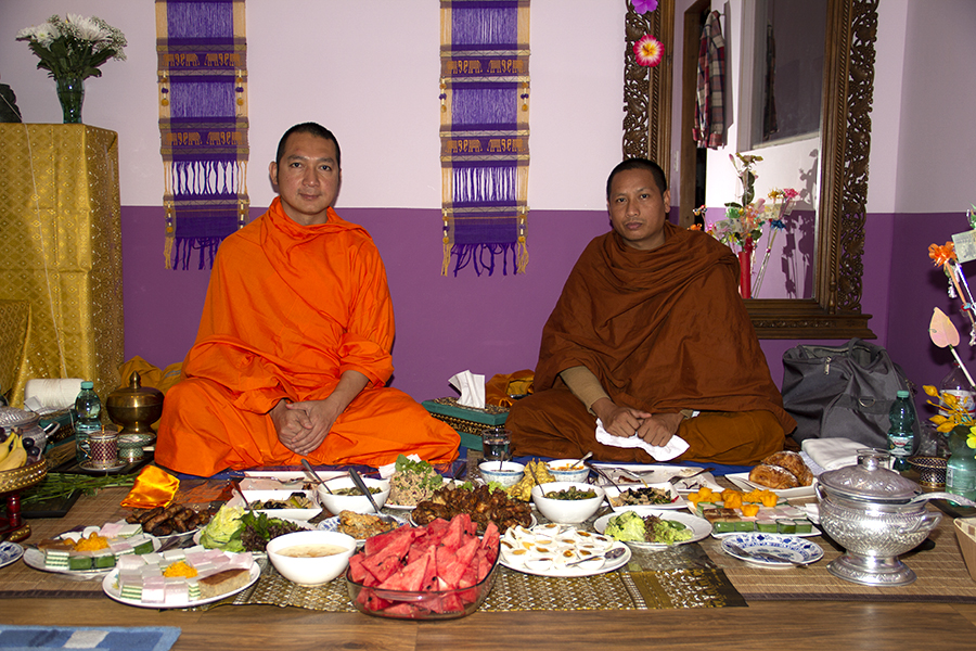 Die Ordination im Bot, dem heiligsten Teil der Tempelanlage, war sehr feierlich. Der Abt hielt eine Ansprache und stellte jedem Novizen ein paar Fragen. Danach wurden uns die Haare geschoren, und wir erhielten die dreiteilige Mönchsrobe. Anfangs hatte ich Probleme, das Untergewand, das Obergewand und vor allem das oberste Tuch richtig zu tragen. Auch das Barfußgehen war für meine zarten Füße in den ersten Tagen schmerzhaft. Doch wir hatten einen verständnisvollen Lehrer, der den anderen Novizen streng untersagte, über mich Späße zu machen.