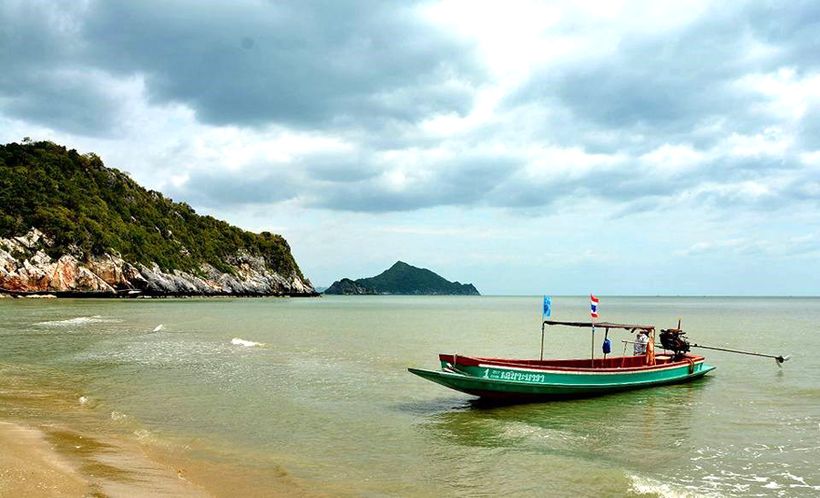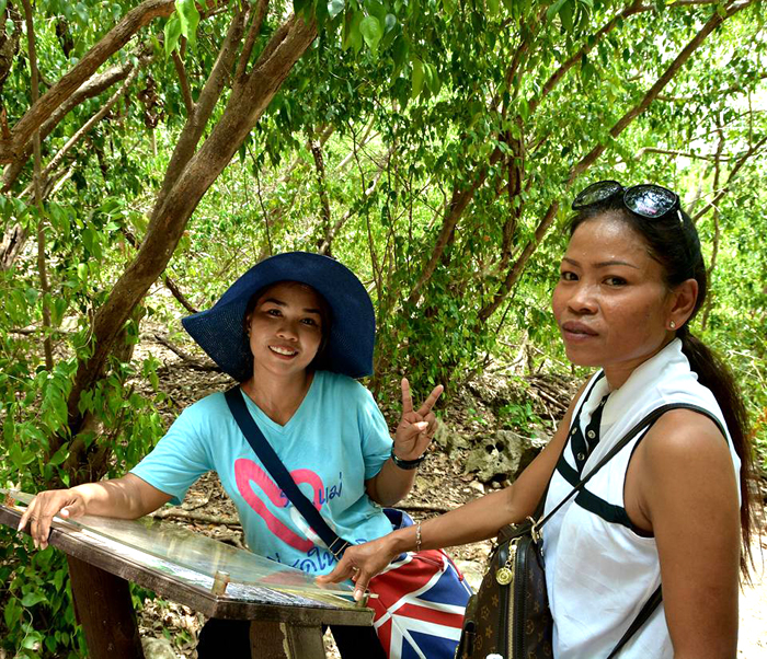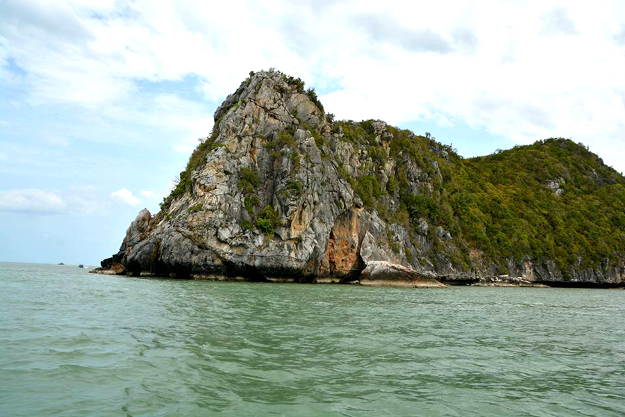 Wer mich kennt, der weiß, dass ich Thailand-Fan durch und durch bin. Also fasste ich den Entschluss, den Ort, der einst zu Ehren von König Chulalongkorn (Rama V.) im Jahr 1890 erbaut wurde, zu besuchen. Gemeinsam mit Schwager Worrawut und Familie ging es mit dem Auto etwa 45 Minuten von Hua Hin nach Bang Pu und von da mit dem LongBoot (150 THB pro Person) ging es um die Insel zum Strand Leam Sala, einer kleinen Bucht am Fuße des Berges. Um nun zur Höhle zu gelangen erfordert es noch einigen Aufwand und Kraft. Es geht ca. 500 m steil bergauf, über Stock & Stein, vorbei an kleinen Eschen, die den Weg kreuzen, fordert der felsige rutschige Weg zum Ort des Begehrens viel Kraft. Hin und wieder legen wir kleine Pausen zur Wasseraufnahme ein, bei über 30 Grad war das wichtig. Sollte einer der Leser des FARANG-Magazins auch auf die Idee kommen einmal sich wie Indianer Jones zu fühlen, denkt an feste Schuhe und nehmt vor allem viiiieeeellll Wasser mit - Ihr werdet es wirklich brauchen.
