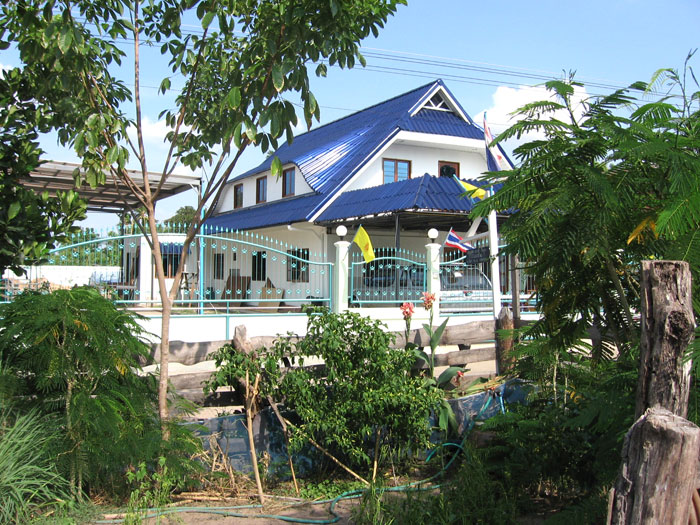 Wir fuhren zum nächsten Seven-Eleven, dann durch Palmenhaine zu einer kleinen Siedlung. Mu´s Wohnung befand sich in einem langen, relativ neuen Reihenhaus. Es bestand aus einem Wohnzimmer mit Korridor und Schlafzimmer, Bad und Küche befanden sich draußen. "Nicht schlecht", sagte ich. "Ja", antwortete Fred. "Das kostet mich gerade einmal 40 Euro im Monat. Du kannst im Wohnzimmer schlafen." "Aber hier ist doch gar kein Bett!?", gab ich zu bedenken. "Wir bauen dir eins aus Decken. Viele Leute in Thailand schlafen auf dem Fußboden." Das gefiel mir nicht. Aber egal. Hart schlafen soll ja gesund sein.