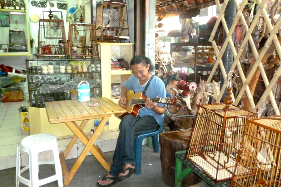 Bevor wir die 350 Kilometer in den Isaan fuhren ging es erst einmal in Bangkoks City. Weau wollte auf dem berühmten Chatuchak Markt Massagebekleidung für sich und ihre Kolleginnen kaufen. Diese Tour hätten wir besser mit Bahn oder Taxi gemacht. Mit Hilfe des GPS auf dem Iphone kamen wir zwar nach einer Stunde nervenaufreibender Fahrt zu diesem Markt. Aber wir fanden die richtige Einfahrt nicht. In Bangkok gibt es manchmal drei Straßen übereinander. Das GPS zeigt zwar den richtigen Standort an, aber nicht auf welcher dieser drei Straßen man ist. Weil man im fließenden, hupenden Verkehr mal nicht eben links ran fahren kann (in Thailand herrscht Linksverkehr) befanden wir uns plötzlich auf einer mautpflichtigen Hochstraße. Dort kamen wir erst nach einigen Kilometern wieder raus. Ein erneuter Versuch diesen Markt zu finden dauerte eine weitere Stunde und das mit Stopp and Go. Das Einkaufen im Chatuchak Markt ist nicht günstig, aber dort bekommt eine Thai-Masseurin alles was sie für ihre Arbeit benötigt. Er ist einer der größten Wochenendmärkte der Welt. Auch ein Tiermarkt gehört dazu. Schon des öfteren wurde er von Tierschützern kritisiert. Deshalb stand an vielen Ständen "No Foto".