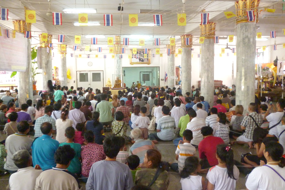 Zunächst kam ich mir in dem Tempelgelände unter lauter Thais etwas verloren vor. Doch schon nahm sich ein freundlicher Mönch meiner an und schickte mich zum Registrieren. Ich war einen Tag früher angereist, um am nächsten Tag rechtzeitig zur Anmeldung da zu sein, denn Vorreservierung gibt es nicht. In der Nacht konnte ich in einem Schlafsaal im Kloster übernachten und hatte Zeit, mich mental auf die kommenden Tage einzustimmen.