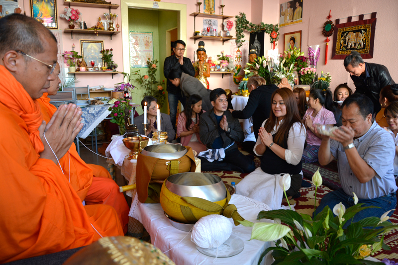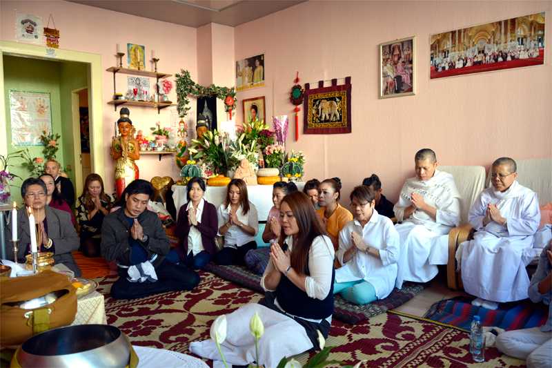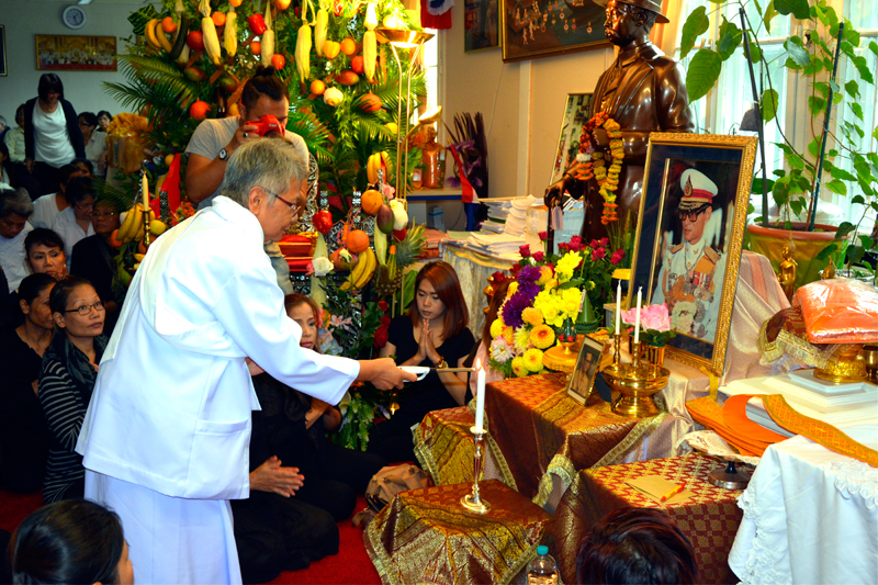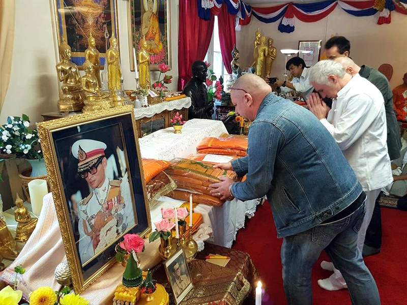 Normalerweise hätte dieses Jahr am 16. Oktober ein fröhliches OK Phansa Fest stattgefunden. OK Phansa markiert das Ende der buddhistischen Fastenzeit und fällt auf den Vollmond des 11. Monats. Dieser Tag ist voller Freude für den Verdienst oder für einen Sohn, der nach der Beendigung der Mönchsklausur (Vassa) aus dem Tempel nach Hause zurückkehrt. Aus Respekt gegenüber dem am 13. Oktober 2016 verstorbenen König Bhumibol Adulyadej wurde in Berlin Pankow das Fest nicht wie geplant fröhlich gefeiert.