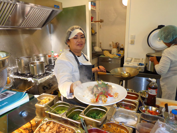Jay Fai ("Tante Warze"), die nun weltbekannte Streetfood-Königin der gleichnamigen Straßenküche in Bangkoks China Town, die als erste ihrer Art in Thailand mit einem Michelin-Stern ausgezeichnet wurde, ist nun endgültig abgehoben. Doch nicht etwa in Selbstverliebtheit, sondern mit den Maschinen der Fluggesellschaft Thai Airways International (THAI). Business- und First-Class-Passagiere kommen ab sofort in den Genuss, Jai Fais meistbestelltes Gericht - Kai-jeaw Poo (Krabbenommellette) - über den Wolken zu genießen. In einer Facebook-Erklärung von THAI heißt es: "Jay Fai wählte das geeignetste Bordmenü und die besten Zutaten aus, mit besonderem Augenmerk auf jedes Detail der Speisezubereitung. Dabei wurden sowohl die Eignung (des Gerichts) für jeden Flug als auch der Zutaten für den Geschmack aller Passagiere berücksichtigt. Lokale, rohe Zutaten wie Gewürze, Gemüse und Früchte werden für dieses Spezial-Bordmenü verwendet, um die Landwirtschaftspolitik der Regierung zu unterstützen". Björn Jahner