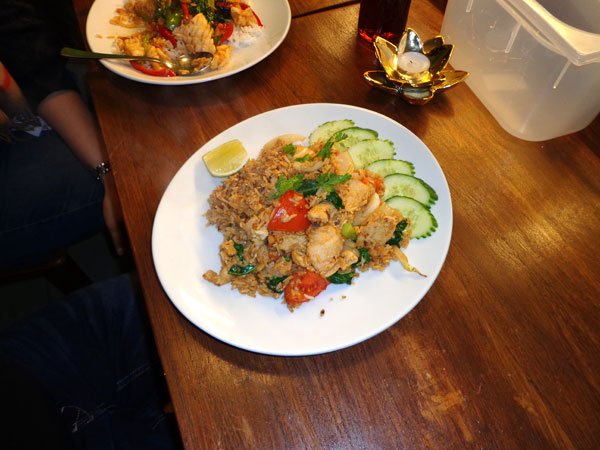 Am nächsten Tag kamen wir bald am Fährhafen Don Sak nahe der Stadt Surat Thani an. Von hier legen Fähren zu den Insel Samui und Phangan ab. Auf Ko Samui lebt eine Freundin von Weau. Wir waren froh, dass bald eine Fähre in diese Richtung ging und fuhren dort hin. Während Weau ihre Freundin bei einem herzlichen Wiedersehen traf, ging ich in ein Restaurant essen. Manchmal ist es ärgerlich, wenn man Thailändisch versteht. Als ich bezahlen wollte, fragte die Tochter ihre Mutter: "Mama, das Essen kostet 40 Baht? Richtig?" Antwort: "Nein, 60 Baht, das ist doch ein Farang." Schon 2 Stunden später fuhren wir mit einer anderen Fähre weiter nach Ko Phangan.