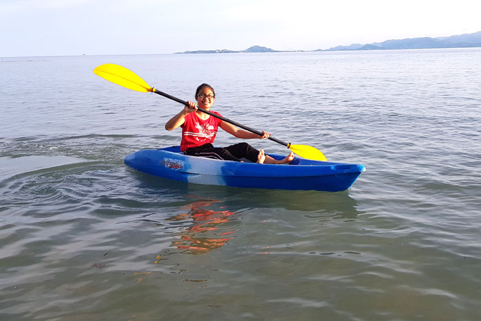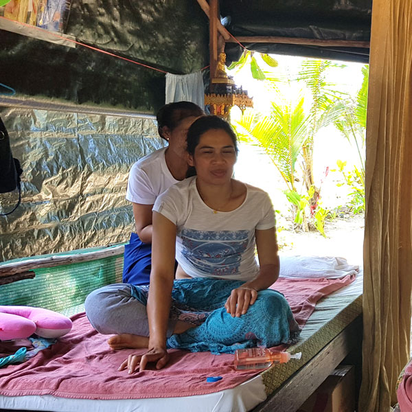 Für die Macher ist das ein riesiges Geschäft und deshalb organisiert man viele weitere Partys. Über den ganzen Monat verteilt gibt es mittlerweile Dschungelpartys, Schwarzmondpartys, Shivamondpartys, Wasserfallpartys, die Party danach usw. Die meisten Jugendlichen sehen von den Schönheiten dieser Insel nur wenig. Sie übernachten in Resorts auf der Südseite. Bei Ebbe ist dort nur "Watt-Meer". Sehr viel schöner sind die kleinen Strände im Norden und Osten. Aber dort kommt man nicht so einfach hin. Einige sind nur mit einem Boot und in der Regenzeit gar nicht erreichbar. Wir übernachteten auch auf dieser Seite und hatten das Glück, dass gerade Flut war. Im bauchtiefen Wasser gingen wir schwimmen und unternahmen bei einem traumhaften Sonnenuntergang eine Kanutour.