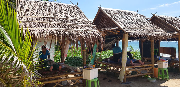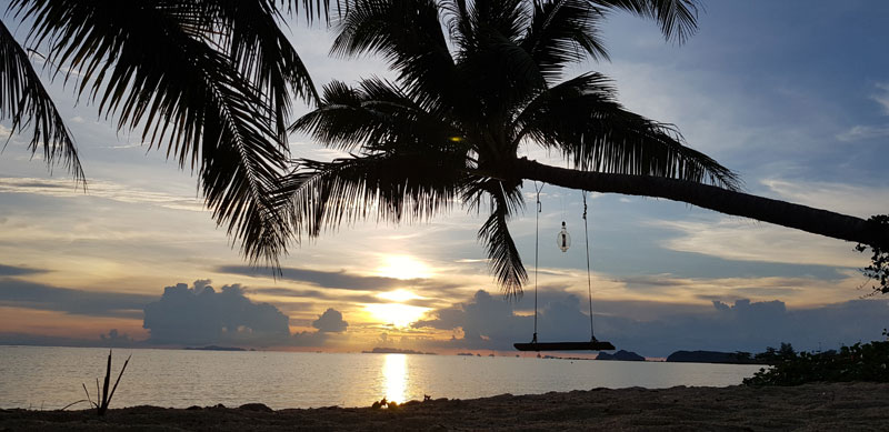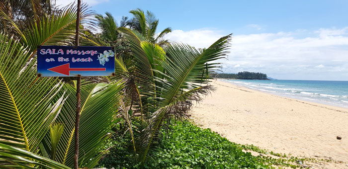 Nach einigen weiteren Kilometern Autofahrt, fiel mir das Fahren schwer und ich fuhr ans Meer. An einem traumhaft puderweißen und fast menschenleeren Strand begann unser Urlaub. Wir ließen uns bei einer Thaimassage verwöhnen und gingen unter der tropischen Sonne schwimmen. Nur, der von der Flut angeschwemmte Flaschen- und Plastikmüll trübte etwas das Erlebnis. Dann fuhren wir weiter nach Khao Lak.