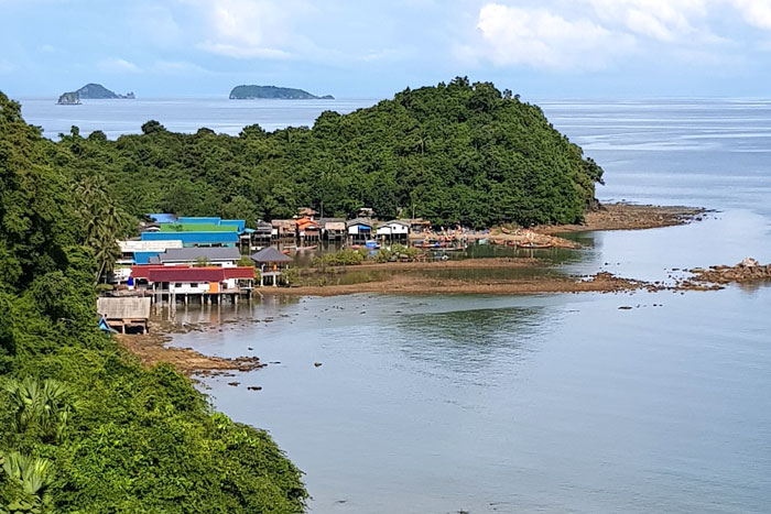 Wir entschlossen uns noch einige Kilometer zu fahren. So wären wir unserem Ziel Ko Phangan etwas näher. Die Weiterfahrt ging durch eine beeindruckende, grüne, mit Karstfelsen gespickte Gebirgslandschaft. Normalerweise sind sich die beiden Weltmeere, mit nur 100 Kilometern Abstand, an dieser Stelle besonders nah. Man überlegte, hier durch diese Landenge (dem Isthmus von Kra) einen Verbindungskanal zu bauen. Aber die Gebirgskette, sie heißt Tenassarim, ist an dieser Stelle besonders hoch und ein Kanalbau schwierig. Deshalb wurde daraus nichts. Über Serpentinen überwanden wir die Berge und benötigten so mehr als 200 Fahr-Kilometer bis ans andere Meer. Übernachtet haben wir in einem Resort auf halbem Weg.