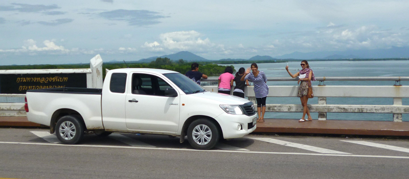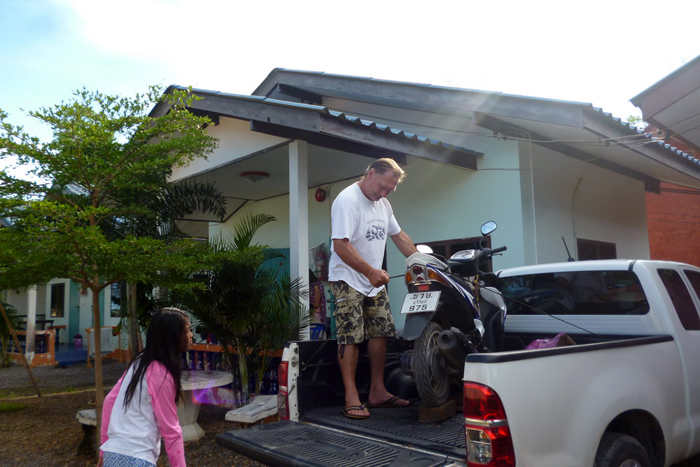 Meine Schwiegermutter, eine Nichte und Weau´s Schwester Wän kamen auch mit. Schwiegermutter und Nichte waren noch nie am Meer. Eigentlich waren sie überhaut noch nie weit weg von Ban Pampa gewesen. Ich war gespannt wie das wohl werden wird. Damit ich vor Ort besser beweglich bin, lud ich das Motorrad mit auf. Es war ja genügend Platz auf der Ladefläche des Pick-ups.