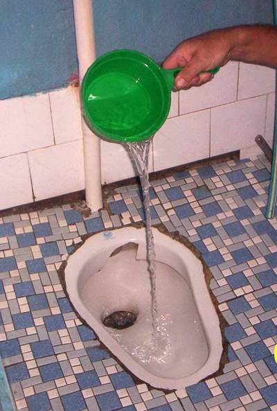 Die Schwiegermutter ging natürlich nicht ins Wasser, hatte aber an dieser Reise auch ihre Freude. Einziges Problem: Es gab weder eine Schöpftoilette noch eine Schöpfdusche. So etwas ist bei ihr zu Hause, wie fast überall im ländlichen Thailand, noch immer üblich. Schöpfduschen und -Toiletten bestehen aus einem mit Wasser gefüllten Behälter und einer Schöpfkelle. Damit begießt man sich beim Duschen und reinigt sich nach dem Toilettengeschäft. Hier aber gab es Wasser aus der Wand. Damit konnte Schwiegermutter sich nicht anfreunden.