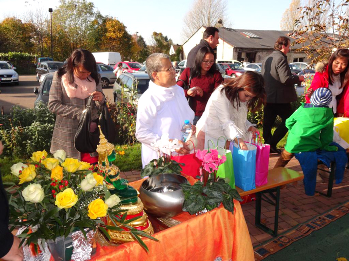 Nach einigen Tagen fuhren wir zurück nach Ban Pampa. Jeder hatte wichtige Termine: Auf Schwägerin Wän warteten Kunden zum Haare schneiden, Schwiegermutter wollte ihrer Schwester bei der Vorbereitung einer Totenfeier helfen und Weau wollte die Urne mit den sterblichen Überresten ihres vor 8 Jahren verstorbenen Ehemannes in einem Tempel einmauern lassen.
