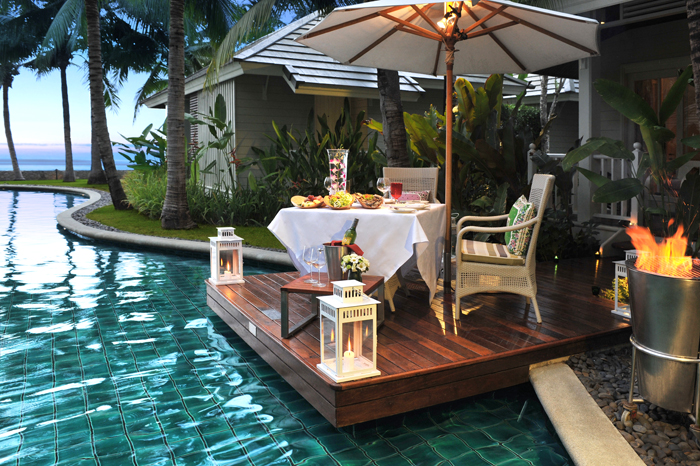 Zum Wohnen stehen vier unterschiedliche Preis- + Zimmer-Kategorien zur Verfügung. Unbedingt zu empfehlen sind die Beach-Villa mit Terrasse und direktem Zugang zu dem sehr großen Hotel-Pool oder die intimen Pool-Villa-Häuser im hinteren Bereich der Anlage mit Mauer, Sichtschutz und eigenem Pool im schönen Garten. Für die zumeist ja nur wenigen Tage ihres Aufenthaltes und speziell zu zweit, sollte man sich das mal gönnen und Sie werden es sicher nicht bereuen, zumal die Preise speziell in der Nebensaison akzeptabel sind. Aber natürlich sind auch die anderen Zimmerkategorien ohne die genannten Vorteile völlig OK. Das preisgünstige und gute Hotel-Restaurant befindet sich in erster Linie direkt am Meeresstrand und bietet Ihnen somit eine tolle Atmosphäre bei Speis und Trank.
