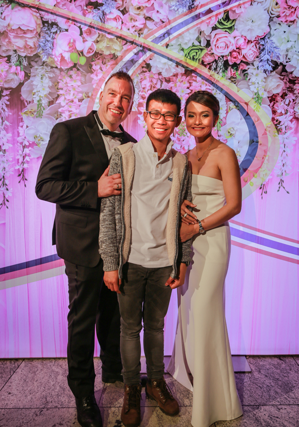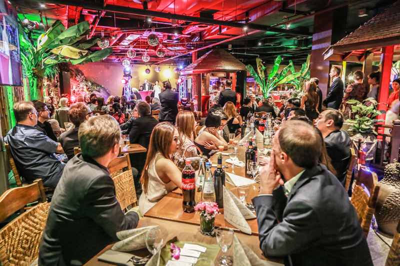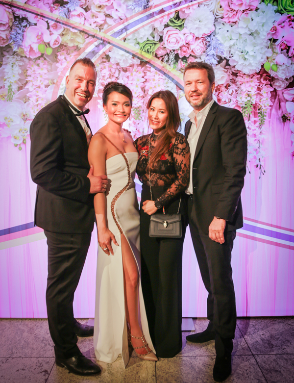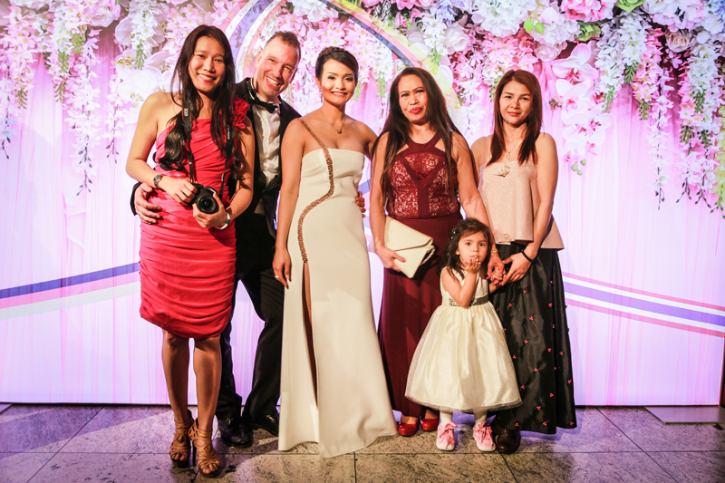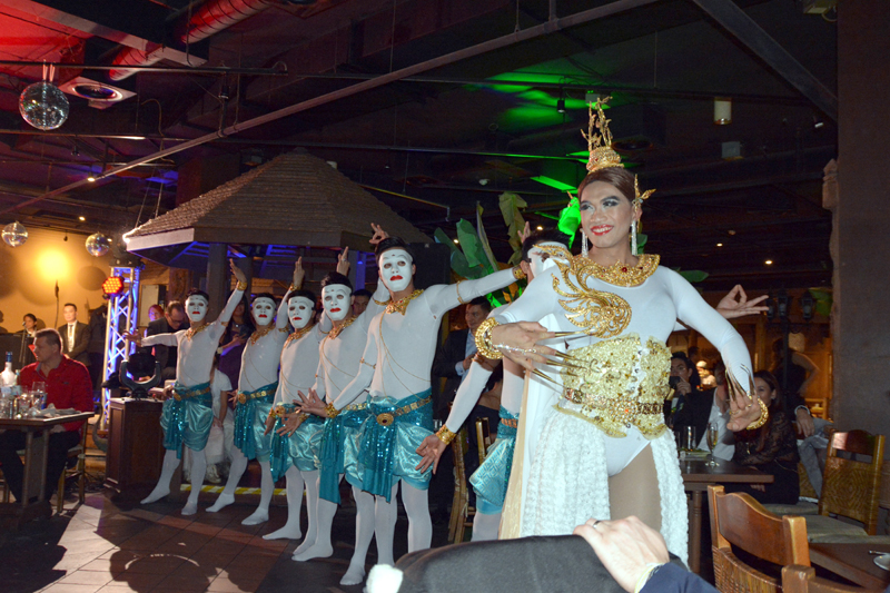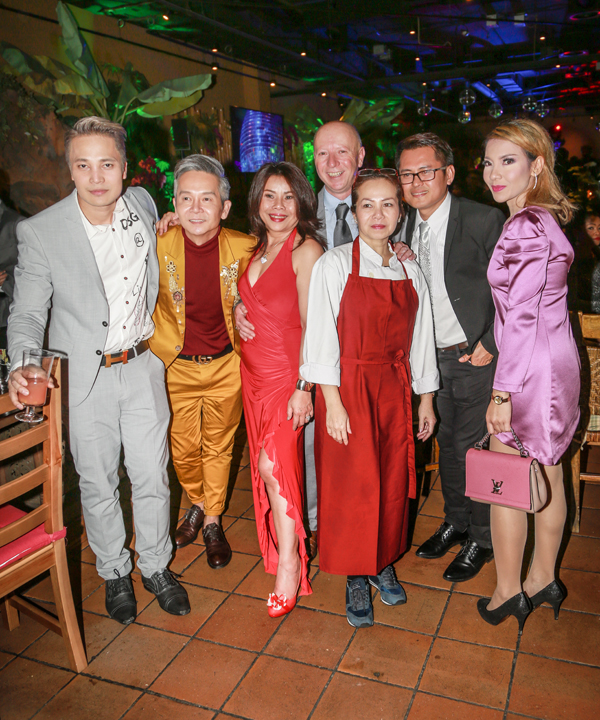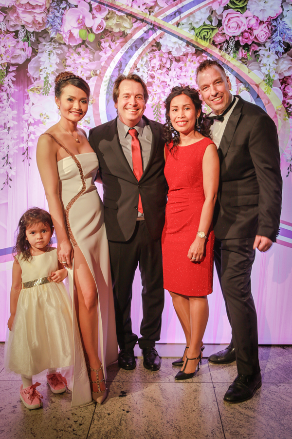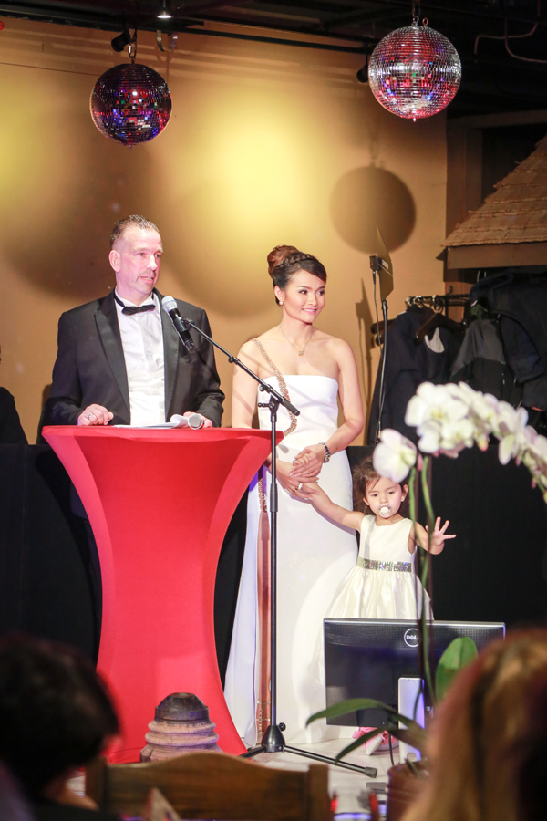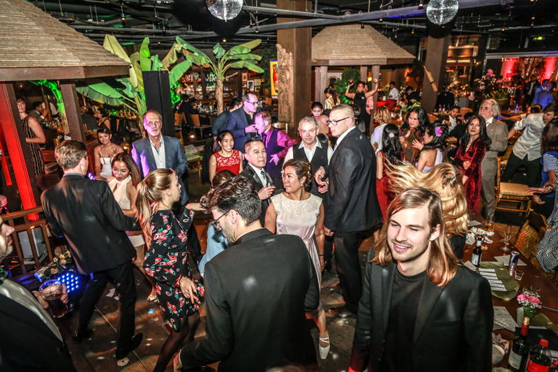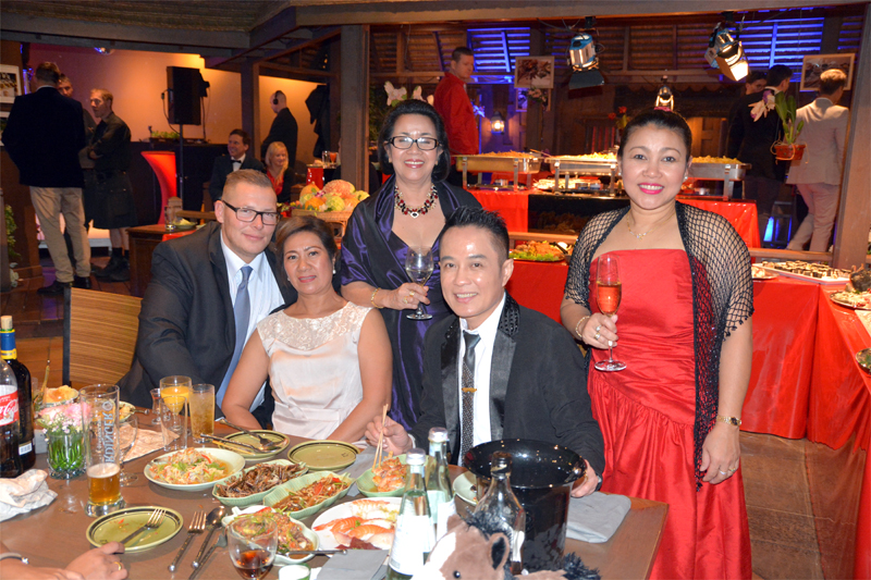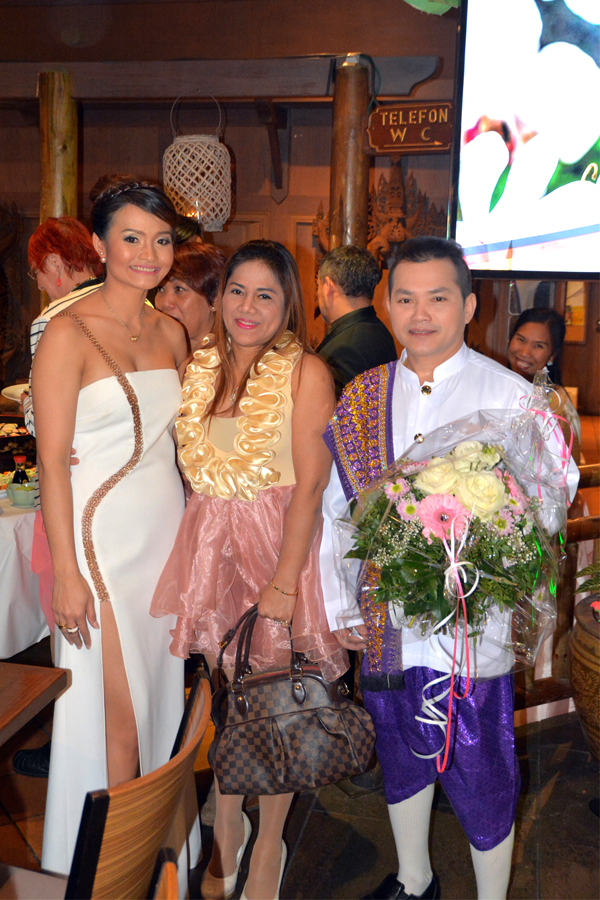 Danach präsentierte sich das "Sala Thai" für die Feier von seiner schönsten Seite. Es gab auch Platz für ein umfangreiches Buffet (es gab wirklich nichts, was es nicht gab), das von Thai Cusine at Sala Thai Restaurant, Italy Buffet at Trattoria Salute und Sushi at Ishin GmbH zubereitet wurde. Unter den Gästen, die aus London, der Schweiz, Frankfurt, München und Hamburg extra angereist waren, befanden sich auch Ehrengäste der Thailändischen Botschaft sowie die Kollegen aus der TV- & Medienbranche. Leider konnte Florians Vater, der Schauspieler Charles Brauer, nicht anwesend sein. Er ist gerade deutschlandweit auf Tournee, übermittelte aber per Anruf an alle Gäste seine herzlichen Grüße und wünschte eine schöne Feier.
