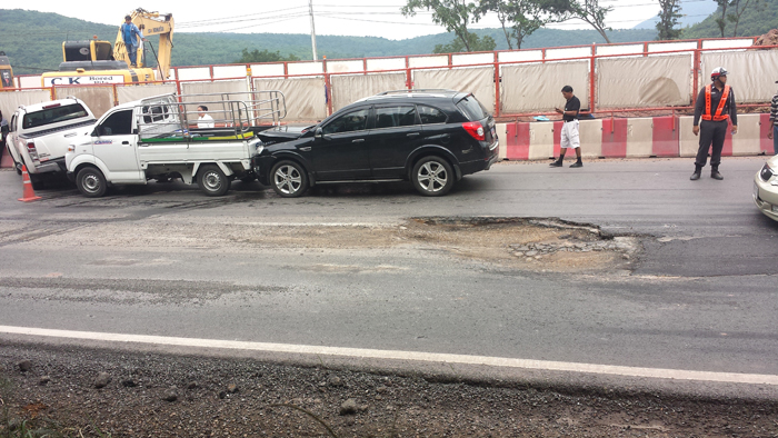 Am Stausee Lem Takon kam es dann tatsächlich zu einem Unglück. Der Highway ist hier auf jeder Seite dreispurig und Weau fuhr auf der Mittelspur. Ihre Geschwindigkeit lag bei 90 km/h. Plötzlich sah ich vor uns ein großes Loch in der Fahrbahn. Nach links ausweichen war nicht möglich, dort fuhr ein LKW. Hastig rief ich: "rechts rüber!" Erschrocken steuerte Weau das Auto leicht in Richtung rechte Spur und konnte dem Loch gerade noch ausweichen. Aber dann krachte es fürchterlich: Auf dieser Spur wollte eigentlich ein anderes Auto an uns vorbei. Der Fahrer erschrak so sehr, dass er eine Vollbremsung machte und das Lenkrad dabei nach rechts riss. Zwei weitere PKWs prallten auf ihn und schoben das Auto an eine Beton-Leitplanke. Fassungslos brachte Weau unser Auto nach etwa 100 Metern auf der Standspur zum Stehen. Wir liefen zurück und waren erschüttert: Drei Autos hatten Totalschaden. Glücklicherweise war niemand verletzt. Ich malte mir die schlimmsten Folgen aus. Schließlich lief der Leihwagenvertrag auf meinen Namen: Internationale Verwicklungen, Schadensersatz und so weiter. Aber wir hatten Glück im Unglück. Nach der Schadensaufnahme durch die Polizei und einem Besuch im Polizeipräsidium wurde festgestellt, dass uns keine Schuld traf.