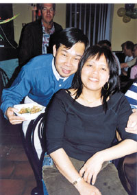 Das passte ja wirklich gut. Gleich neben Ornchens Thai-Massage in Berlin-Pankow war ein ehemaliges Musik-Café zu günstigen Konditionen zu haben. Und so schlugen Orn und Volker zu, denn beide lieben Karaoke und Thai-Musik. Nun brauchen sie nachts nicht mehr nach Neukölln zu sausen oder immer ins Mex Class Thai in den benachbarten Wedding zu fahren. Jetzt kann man den Feierabend im eigenen Musik-Laden mit Freunden verbringen. Zur überraschend schnellen Einweihung am Freitag, den 14. Mai 2004, waren dann auch viele gekommen: Lek und Wan sowie Ut als Entertainer, dann Walin von der Thai-Massage in der Maxstraße mit Team, später Pi Deng von der Sunshine Inn-Thai-Massage Kuglerstraße mit Noi, aber auch Putte mit seiner voll krachenden Mannschaft, Micha, Nit, Mon (wieder ganz happy) und viele andere. Das gemütliche Café verfügt nicht nur über einen prächtigen Tresen mit kleinem Buddha-Schrein, es gibt einen weiteren Raum, der dank Schallschutz und kleinem DJ-Pult und entsprechenden Lichteffekten zu einer regelrechten Thai-Disco im Miniformat wurde. Direkter Konkurrent Suleiman von der Lüderitzstraße ist darüber keineswegs verärgert. Im Gegenteil: Das belebe die Thai-Szene im Berliner Norden, denn die Thai ziehen ja ohnehin in der Nacht von einem zum nächsten Laden. So Süle. Recht hat er.