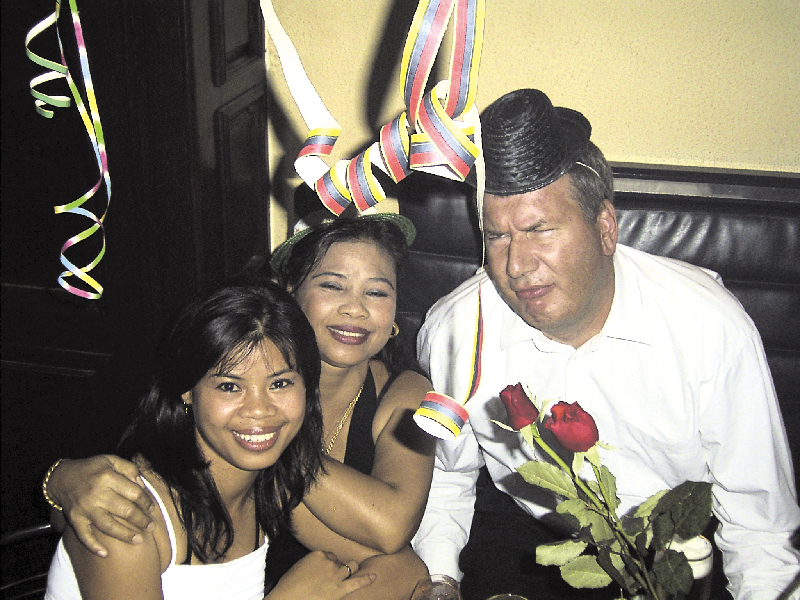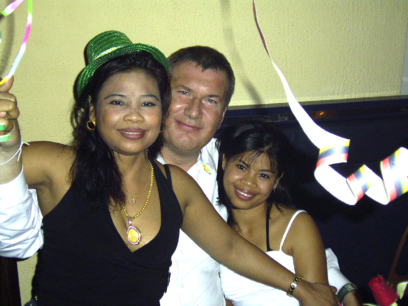 Doppel-Geburtstag im R.C.A. - dem Thai-Musik-Laden mit der besten Bühnen-Show in Berlin. Wobei nicht gesagt sei, dass die anderen schlecht wären. Nur eben die Comedy ist dank Doi von erster Sahne. Also am 15. Januar feierte Sabina im Kreis von Freunden ihren Birthday. Mit Mutter Dukta, Nataly und Schwesterherz Puy. An einem anderen Tisch hatte Onjan ihre Geburtstagsgäste plaziert. Darunter Kolleginnen aus ihre Thai-Massage und auch Mossek und Yad, ja auch ihr lieber Steffen war da. Hoch ging es her, und ville Chivas natürlich auch im Rennen. Und auf der Bühne, da gab es herrliche Elvis-Imitationen mit nackten Jungs-Bäuchen. Andreas vom R.C.A.: Na die sind aber gut im Futter, die müssen wir aber jetzt auf Diät setzten. Ob er das wohl schafft? Ach so, Andreas ist übrigens so hochgewachsen, dass er ohne Leiter die Lampen des an der Decke montierten Video-Beamers auswechseln kann. Neid. Und noch was: Die Luft ist trotz der Kettenraucher dank der exzellenten Abluft-Anlage glasklar und schnuppergut. Die Girls finden das okey.