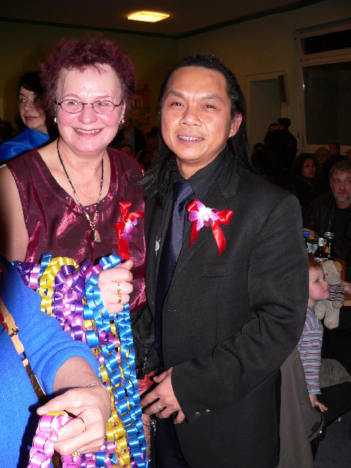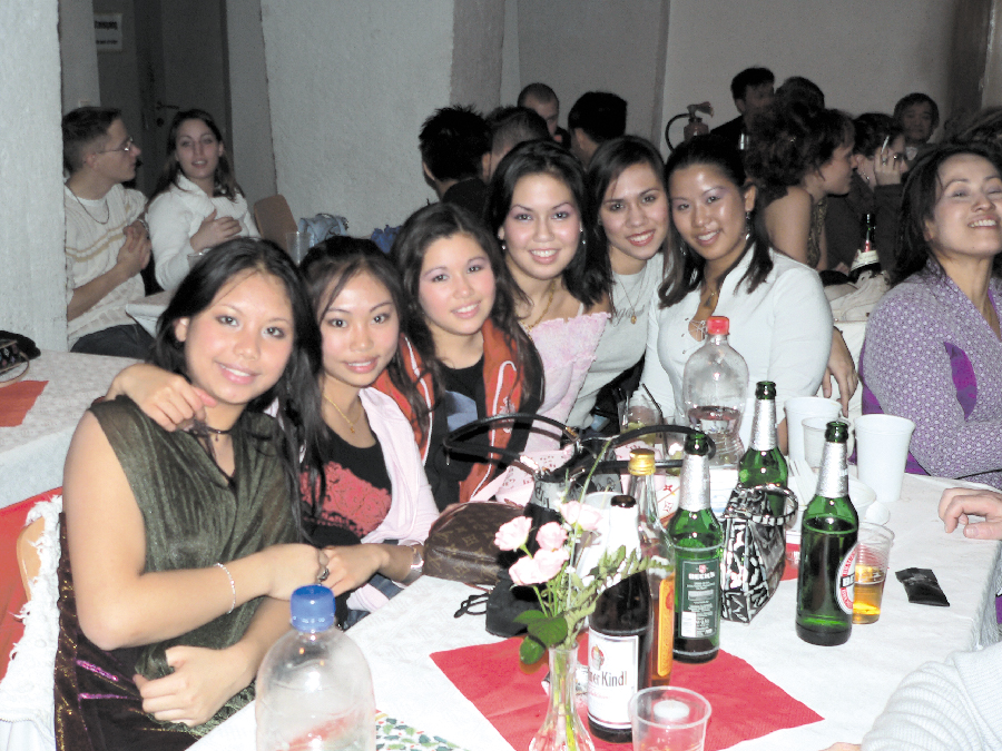 Die Silvester Nachlese-Party mit erlesenen Gästen feierte Phanida vom Thai Restaurant SAWADDI in der Bülowstr. Das war schon echt komisch: Eine ganze Reihe aufgekratzter Thai-Frauen, mitnichten blutjunge Mädels, hatte sich ca. 50 cm lange bunte Papiertüten auf den Kopf gesetzt und machte allerlei Schabernack mit ulkig geformten Luftballons und laut tutendem Faschingskram. Phanida hatte sich ihre Freundinnenschar eingeladen und feierte nach Restaurant-Schluss bis in die Puppen. Dass es dufte Thai-Speisen gab, versteht sich in dem Restaurant von selbst. Höhepunkt des nächtlichen Treibens war dann die Ziehung der Julklapp-Gewinner. Wobei natürlich jeder genau das bekam, was er wirklich nicht gebrauchen konnte. War das ein Spass!