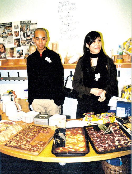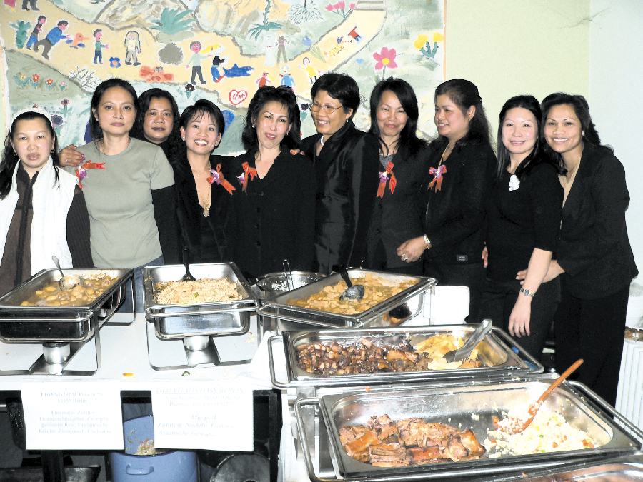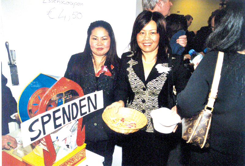 Withee und Düan vom Asia Shop in der Pankstraße (Wedding) sowie Regina und DJ John waren wohl in Berlin die Ersten, denen es eine Herzensangelegenheit war, sofort nach Bekanntwerden der Flutkatastrophe eine Soforthilfe-Veranstaltung für Thailand aus dem Boden zu stampfen. Alles musste sehr schnell gehen. Diese Wohltätigkeitsveranstaltung wurde dann von vielen Thai-Frauen aus dem Freundeskreis des Asia-Shops schnell und gut vorbereitet. Als Ort wurde der Gemeindesaal der kath. Kirche St. Benedikt in Lankwitz gefunden. DJ John, Doi, Tum und Odd, Allan Buranakol und viele Sänger aus den drei großen Musik-Cafés Berlins hatten ihre Teilnahme zugesichert. Es wurden Thai-Essen, Kuchen und Getränke herangeschafft und ein Kulturprogramm zusammengestellt. Mit dabei auch viele Tänzer und Tänzerinnen (u.a. Sabina, Nataly). Großes Lob für zwei der Sponsoren: Für Ralf vom Gastro-Ausstatter Rüffer HALO sowie für Pratina (Thai Vitalis Oase Wannsee). Letztere hatte erst am Vortag davon erfahren und sofort riesenhafte Mengen Hähnchenkeulen bearbeitet und so zum gewaltigen Erfolg der Veranstaltung mit beigetragen. Alle traten gratis auf, so dass ganze 10.500 Euro als Erlös zusammenkamen. Diese Summe wurde bereits an eine Stiftung in Bangkok weitergeleitet, der der König von Thailand vorsteht. Das Geld kommt den Opfern der Katastrophe zu. Diese Veranstaltung war mitnichten eine Gedenkstunde. Sie war eine schöne und sinnvolle Geste der Auslands-Thailänder. M.H.