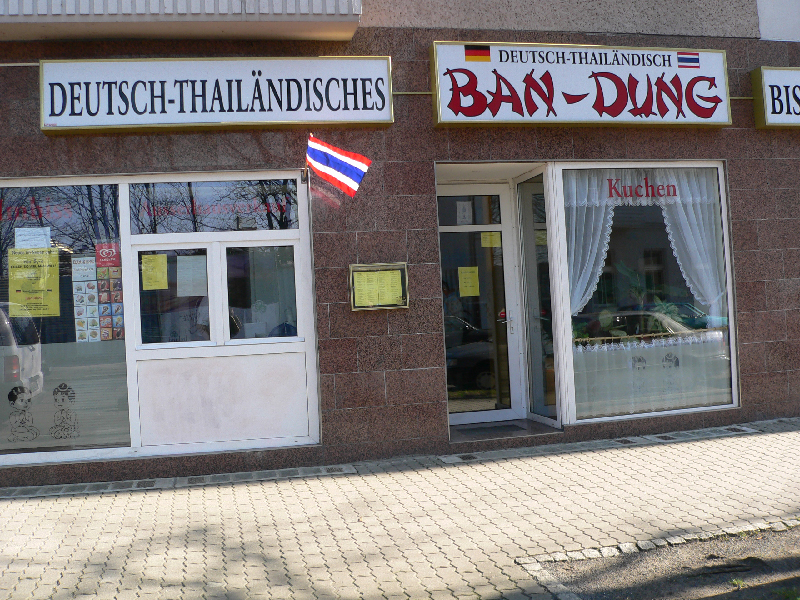 Es gibt sie noch, die kleinen Wirtschaftswunder in Deutschland. Man muss eben nur genau hinschauen. Oder hätten Sie gedacht, dass im einst vergessenen Viertel um den Bahnhof Berlin-Schöneweide (im Volksmund: Schweineöde), nahe dem ehemaligen Kabelwerk Oberspree einmal ein Thai-Restaurant gedeihen könnte? Tut es aber. Es handelt sich um das Deutsch Thailändische Restaurant BAN-DUNG, das nun ein Jahr alt geworden ist und dies auch zünftig am 1. April mit seinen Gästen gefeiert hat. Sulima und Siegfried haben mit viel Geschick und einem guten Team das damalige Leerstands-Objekt zum Erfolg geführt. Nun zieren edle thailändische Tischdecken mit goldenen Elefanten die zahlreichen Tische. Im hinteren Raum gibt es eine Karaoke-Anlage. Und die Sonnen-Tage werden viele Gäste in den Biergarten locken. Ein Erfolgsrezept ist ganz bestimmt die gelungene Mischung aus thailändischer und deutscher Kost bei vernünftigen Preisen. Siegfried dazu: "Wenn Japaner kommen, dann möchten die Eisbein essen". Ab Oktober wird übrigens wieder samstags gebruncht, und an den Sonntagen gibt es ein Mittagsbuffet.