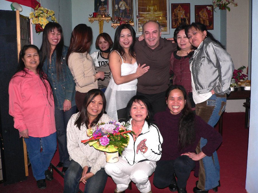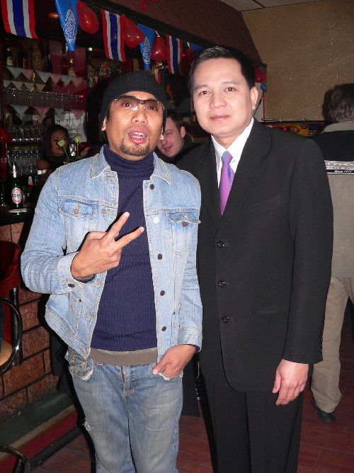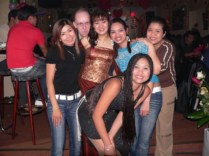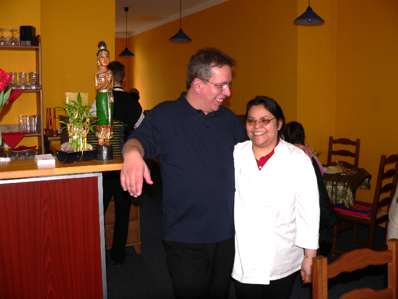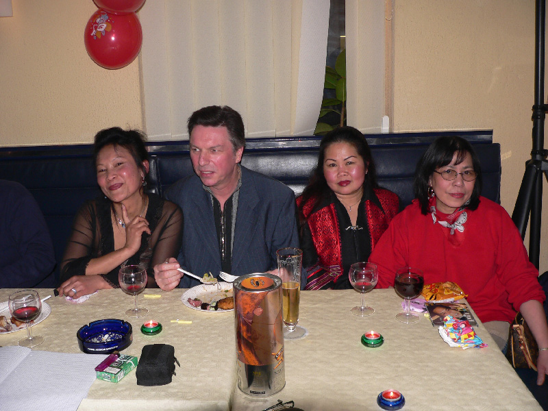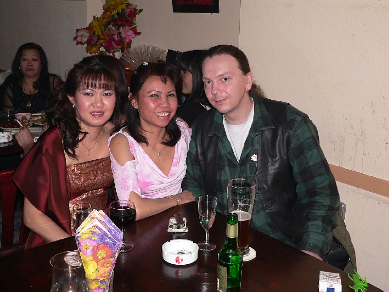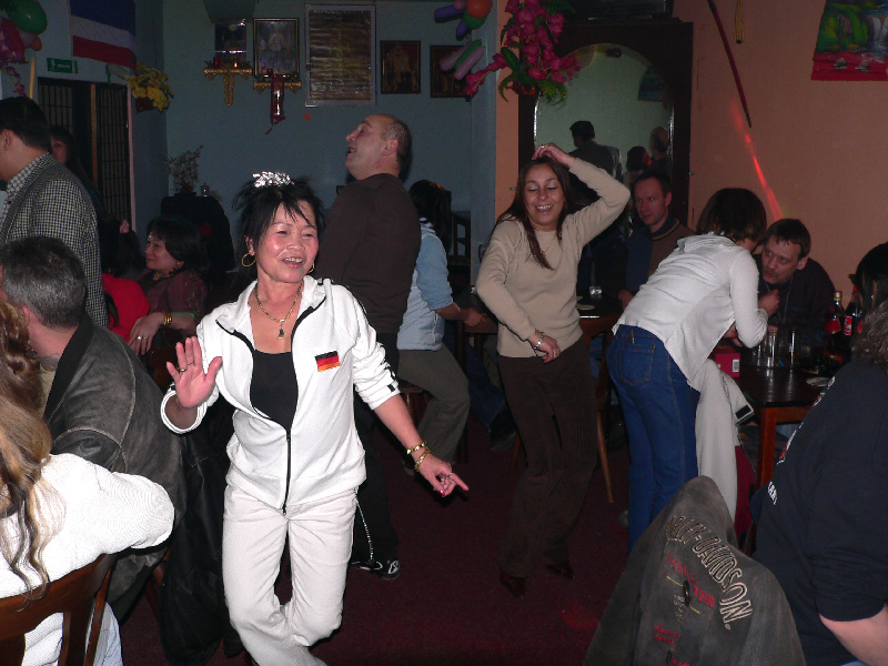 Suleiman - das ist Süle, der muntere Chef vom bewegten Mex Class Thai im Berliner Wedding. Auf dem großen Foto rechts sieht man den Glücklichen an der Seite seiner Nang inmitten einer Schar netter und zumeist Thai-Frauen. So hat er es gerne. Nun, zu seinem Geburtstag gab es am 4. März eine recht flotte Sause. Und viele Freunde und Stammgäste hatten sich eingestellt: Deng von Sunshine Inn, Thai-Fredy, Noi, Thong, Tanzmaus Tippi & Tochter Nit, Lek & Wan, und sogar Sa & Bernd schauten vorbei. Doch bei all dem ausgelassenen Trubel hatten sich zwei Farangs ganz wichtige Dinge zu sagen: Der eine ist Wisey vom Starflights-Reisebüro und der andere der Autor dieser Zeilen. M.H.