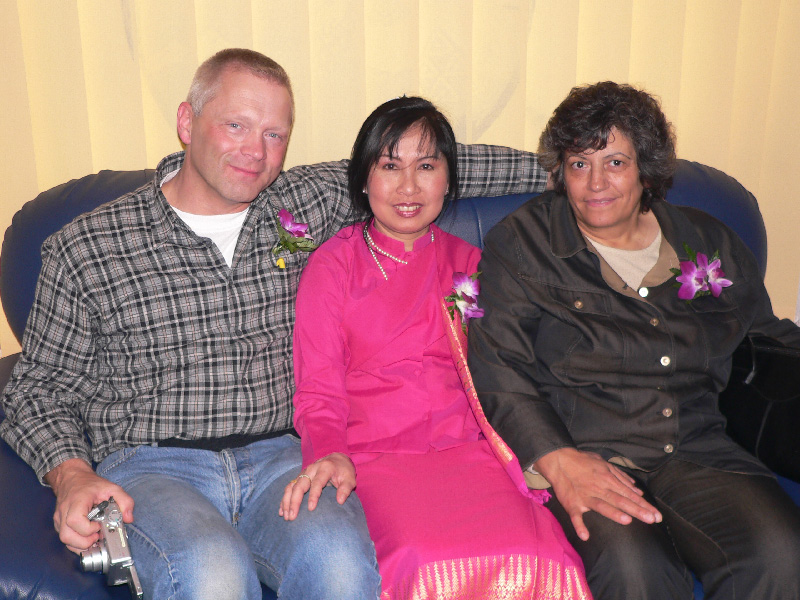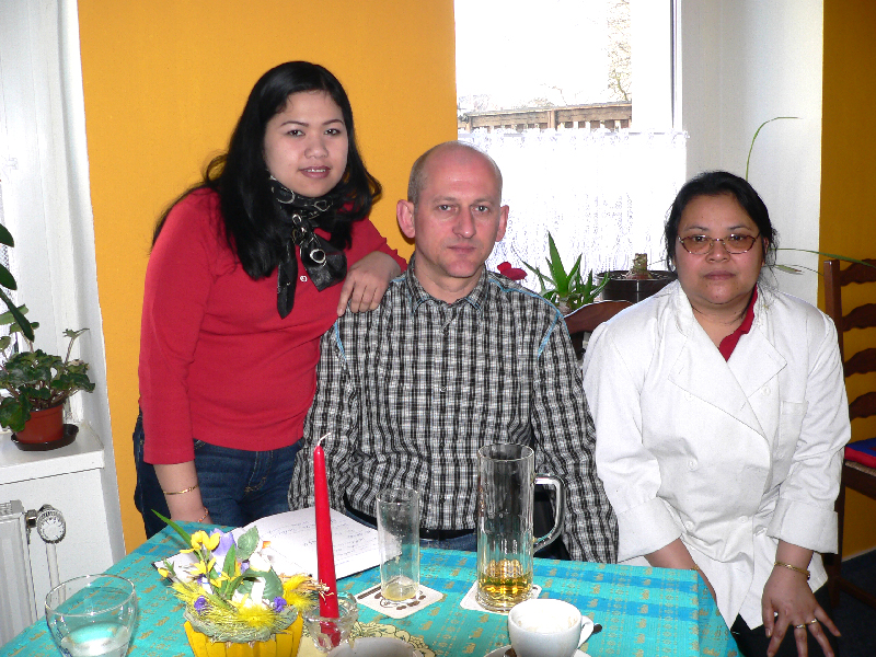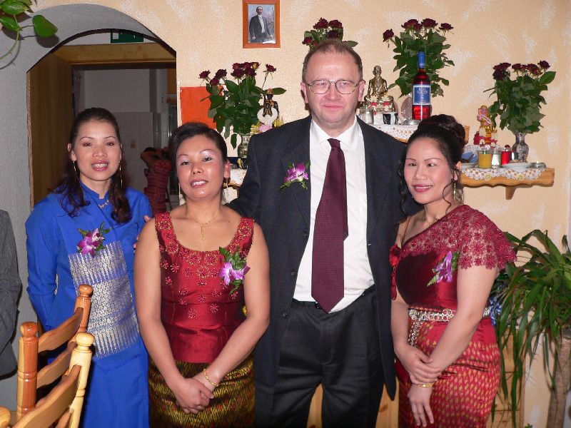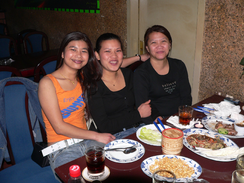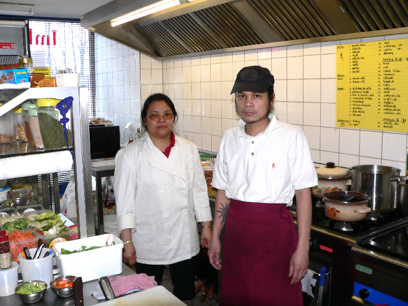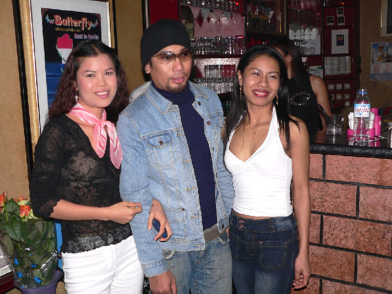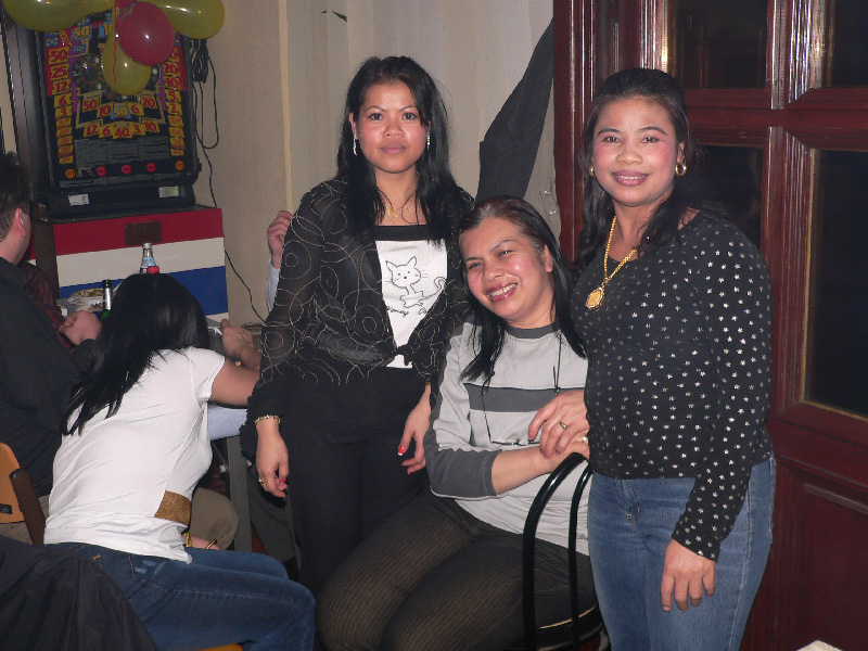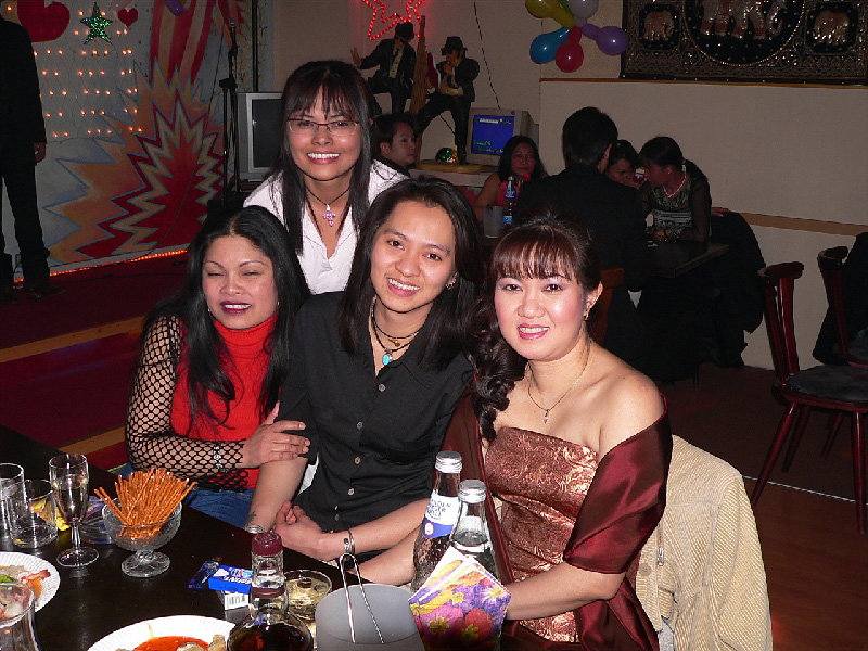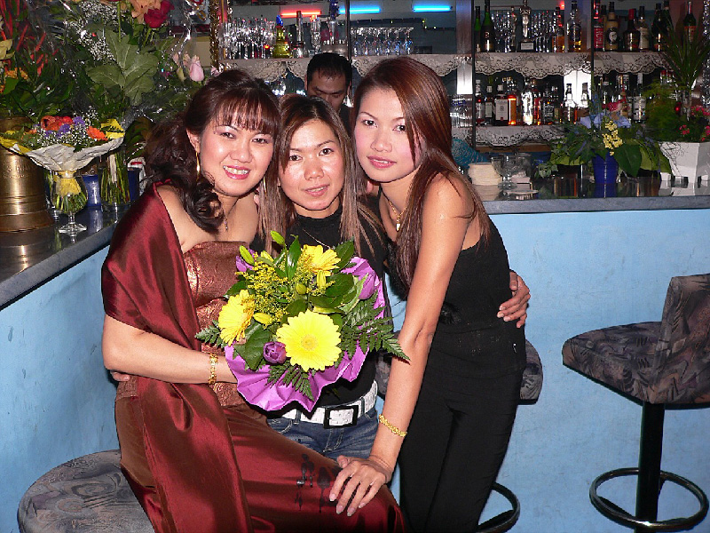 Helmut seiner ist ja nicht nur ein einfacher Lichtbildner, sondern ein regelrechter Fotodesigner. So schießt er allerorten seine schönen Bilder von weiblichen Menschen und macht sie am heimischen Peh Zeh ganz schick. Neuerdings bekommen die Fotos so filigrane Rahmen, wie Scherenschnitt. Das edelt die Sache etwas auf und findet allgemeinen Anklang. Mit seiner neuen Digital-Kamera geht das Knipsen auch viel einfacher. Die Sache hat nur einen Nachteil. Er knipst nun noch mehr als früher mit der guten alten Spiegelreflex. Die jetzige Unzahl von Fotos füllt langsam aber sicher seine Festplatte. Und bei der Fülle der Bilder kommt es auch vor, dass Helmut so manches Bild gar nicht mehr wiederfindet. Auf dem Foto hier rechts oben sehen wir Dia, Meao und Seng. Aufgenommen wurde es im Bangkok Café in der Sonnenallee, wo es gelegentlich zu kleineren Redaktionskonferenzen und ähnlichem kommt. Seng nun, ein ganz lieber Mensch, feierte mit ihren Freunden ebenda gerade ihren Abschied aus der Stadt. Sie ist nun wieder in der Heimat in Südthailand und hofft, schnell wieder zu kommen. Wir warten solange.