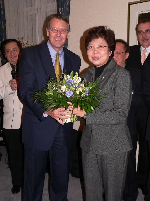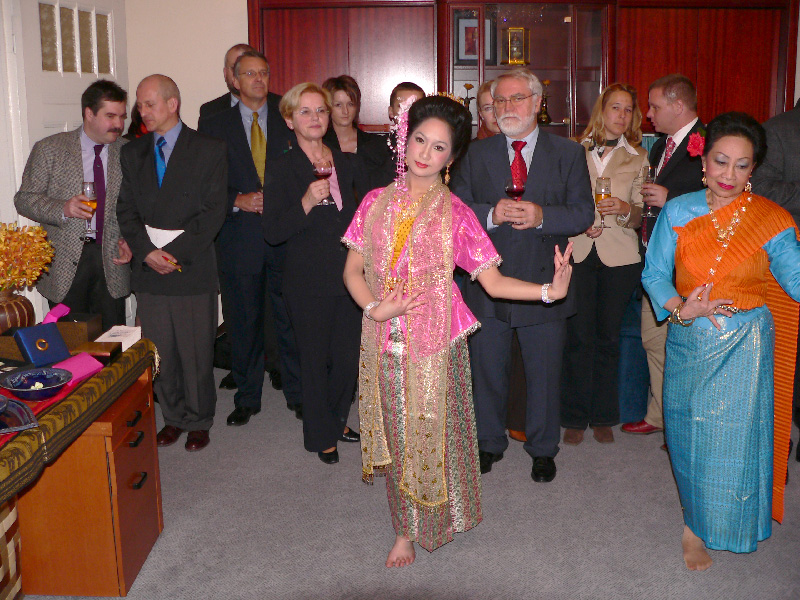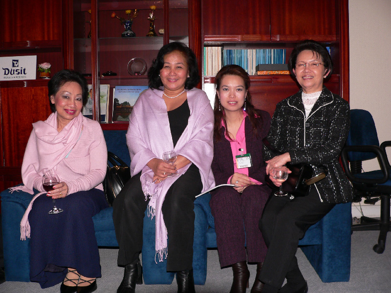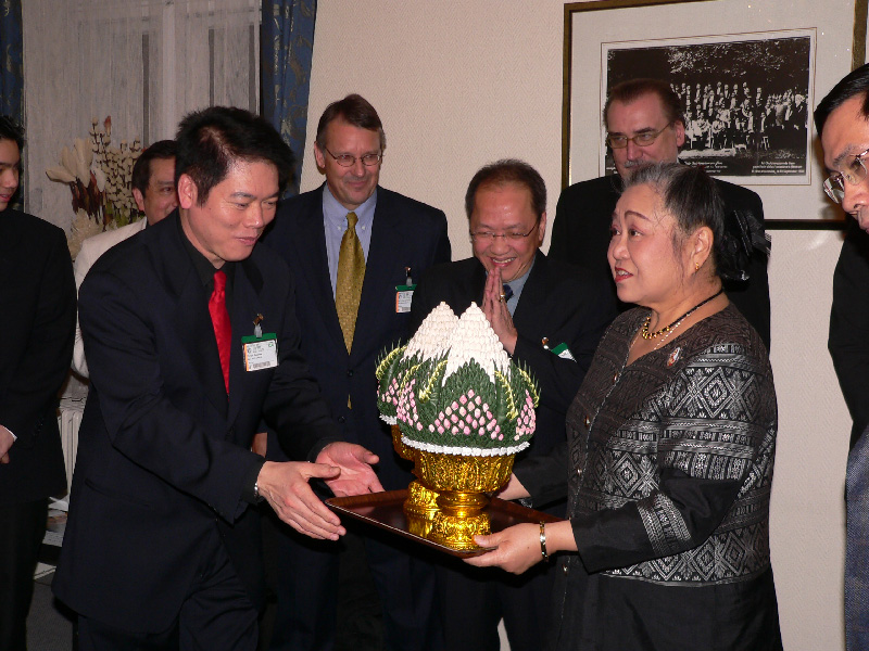 Am 13. März gab es in Berlin Wannsee einen Cocktail-Empfang in der Handelsabteilung der Thailändischen Botschaft. Die DUSIT-Gruppe hatte dazu geladen. Anlass war einerseits die ITB und zum anderen 35 Jahre Dusit Thani Hotel in Bangkok. Bei der Gelegenheit wurden auch einige Manager der thailändischen Hotel-Gruppe geehrt. Höhepunkt der Veranstaltung war die Übergabe eines kostbaren Blumenornaments an Ihre Exzellenz, Botschafterin da Ausdruck hoher Dankbarkeit.