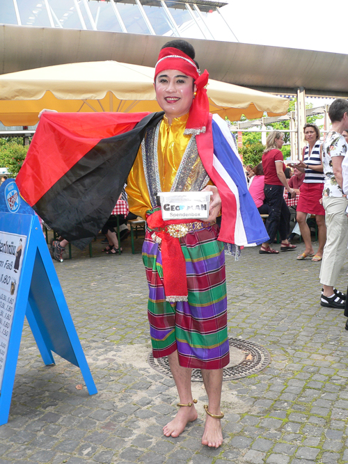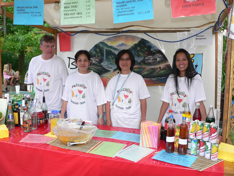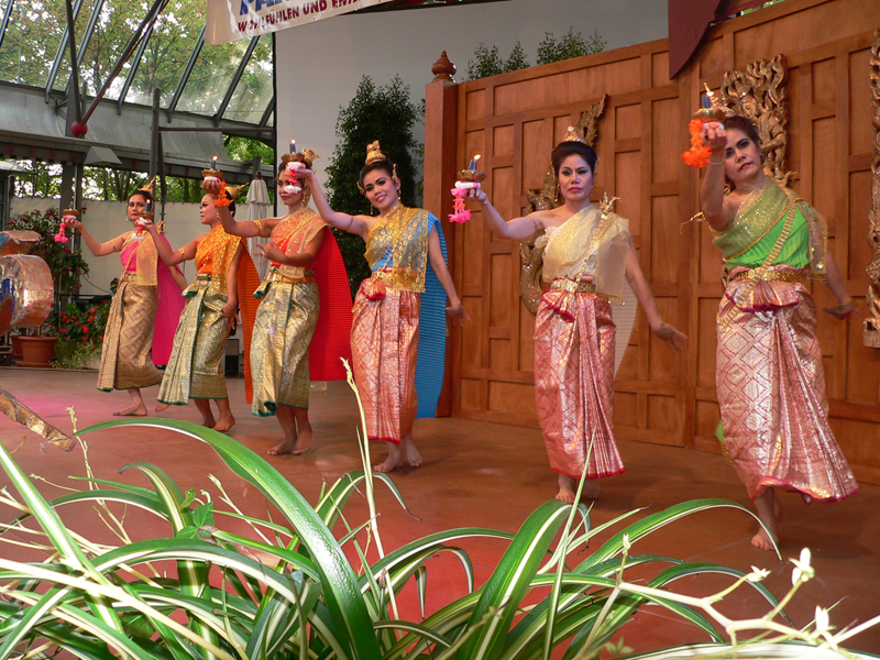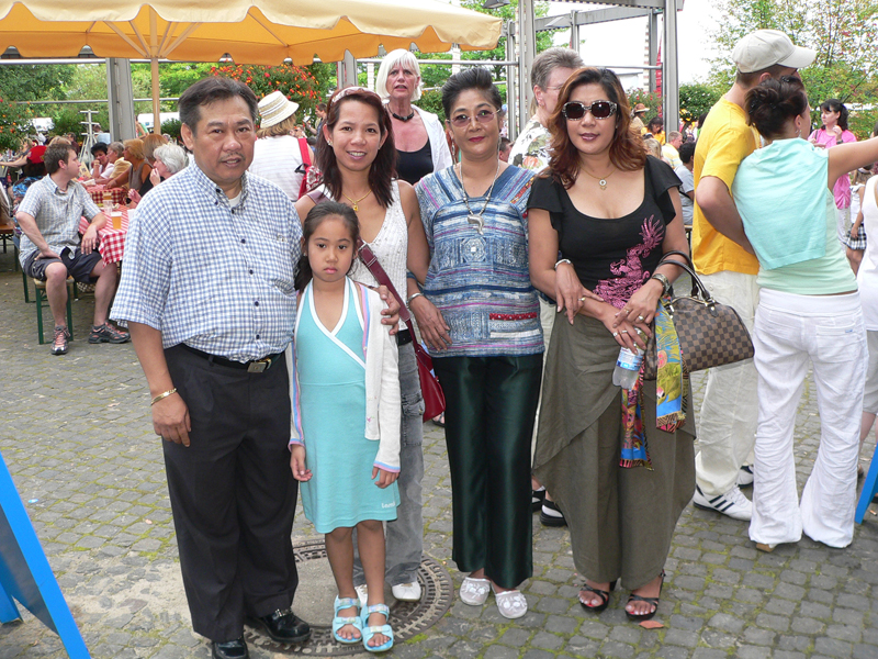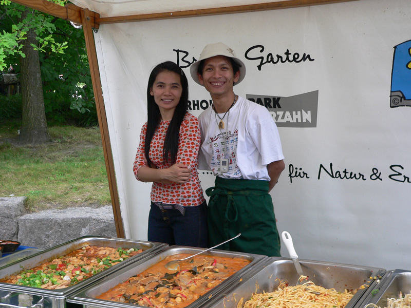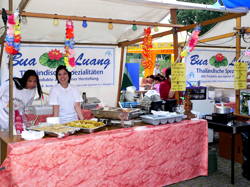 Am 20. August fand, wie in jedem Jahr, ein Marktplatz Asien im idyllischen Britzer Garten in Berlin-Neukölln statt. Das ist das Gelände der ehemaligen Bundesgartenschau. Veranstalter war erneut das Reiseunternehmen GEOPLAN. Es wurde ein kleines Dorf aus vielen Informations-, Verkaufs- und Imbiss-Ständen errichtet. Dabei war auch Olaf vom Thai-Restaurant Bua Luang in der Schöneberger Vorbergstr. Aus München extra angereist war Meo mit einer Auswahl an thailändischen Rotweinen. Auf einer überdachten großen Bühne fand ein buntes Show-Progamm statt. Dessen Höhepunkt war der beieindruckende Auftritt der beiden Drachen von der Kung Fu Akademie in Kreuzberg nebst Trommlern. Unter den vielen Besuchern und Künstlern wurden gesichtet: Allan Buranakol mit Sportmannschaft, Bancha, Nancy mit Sonnenbrille, Toi vom R.C.A. als Tänzer, Putte, die ganze Familie von Meau sowie Ingrid & Bovorn. Im nächsten Jahr dann an gleicher Stelle!