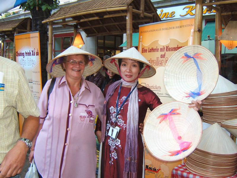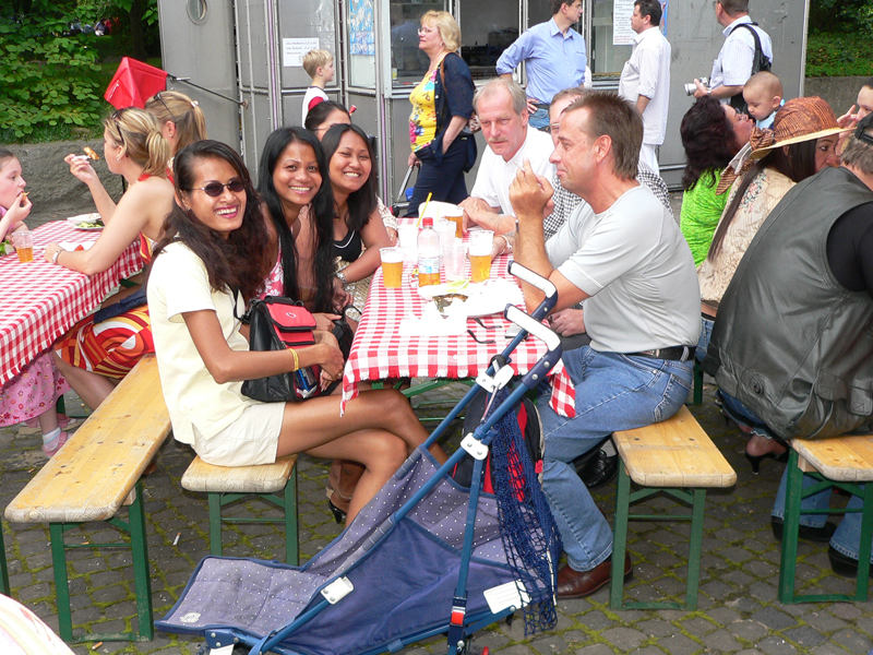 Dann gab es ja Anfang August in der Karl-Marx-Allee (Friedrichshain) die bekannte Biermeile. Natürlich waren wir auch alle drei Tage dabei. Ist ja nicht weit von unserer Wohnung. Und wir haben festgestellt, dass es in diesem Jahr ganz schön voll war. Vor allem ganz stark vertreten waren die Vietnamesen. Dabei auch ein Stand mit Singha-, Chang- und Tiger Beer. In diesem Jahr nicht mit dabei: Roland vom Thairestaurant ISAAN in Reinickendorf. Roland will es übrigens verkaufen und sich dann voll auf Straßenfeste und open air konzentrieren. Und auch auf besagter Biermeile trafen wir Thais. Zum Beispiel Bovorn mit seiner lieben Gattin Ingrid (siehe Fotos unten).