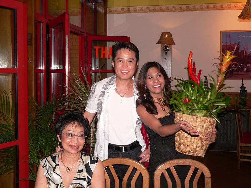 Am 23. Juli feierte Puy ihren Geburtstag mit guten Freunden im R.C.A. Puy ist eine richtige Frohnatur mit einem herrlichen Lachen. Eingeladen hatte sie nicht nur das FARANG-Team sondern auch ihre Schwester Sabina nebst Freundin Nathaly. Auch dabei: Wanna, Puys letzte Chefin vom kleinen aber feinen Thai-Restaurant Taleh Thai im Prenzlauer Berg. Aufmerksam achtete die Gastgeberin darauf, dass jeder auch mit Speis und Trank versorgt wurde. Natürlich fand auch das schon traditionelle Happy Birthday Singen aller auf der Bühne des Musik-Cafés statt. Ein kleines Highlight für Auge und Ohr war dann der Auftritt von Sabina und Nathaly. Diesmal als singendes Duo. Das konnte sich sehen lassen.