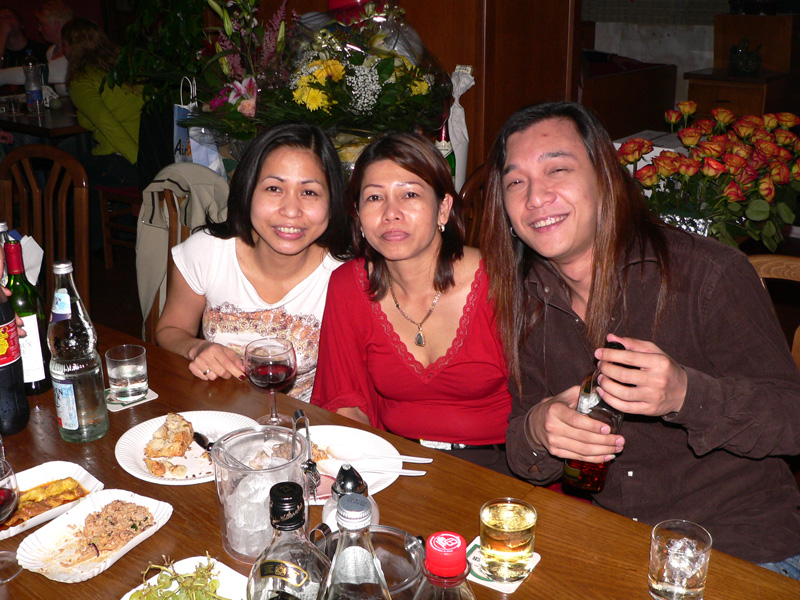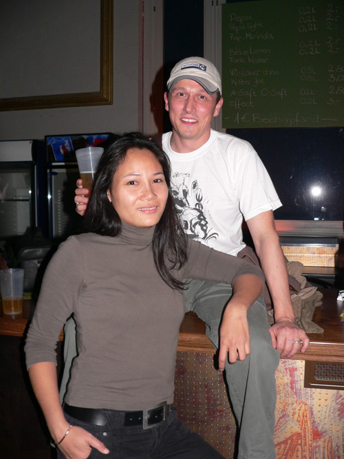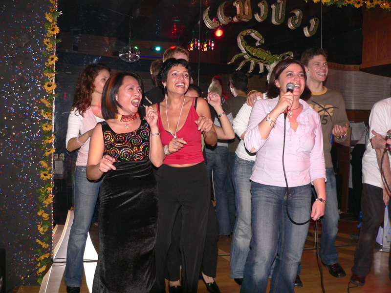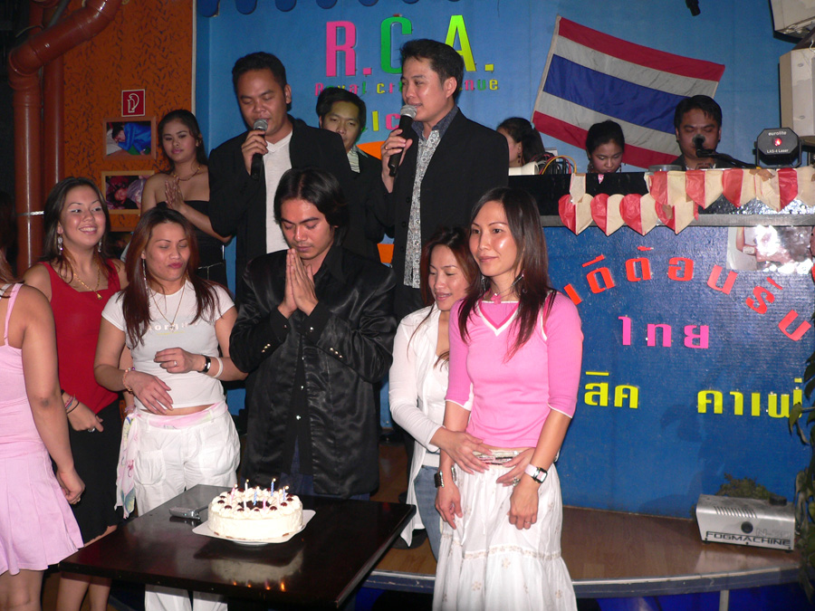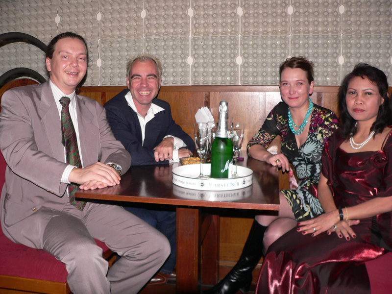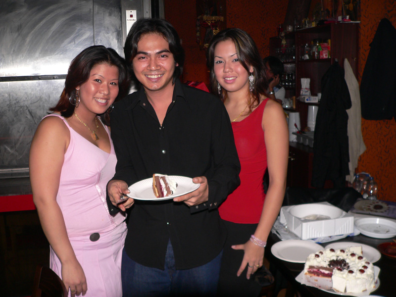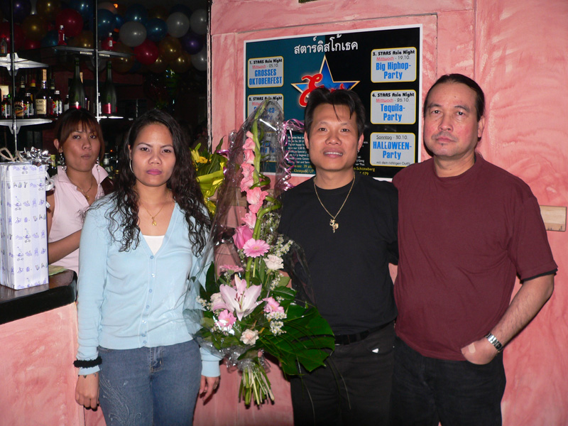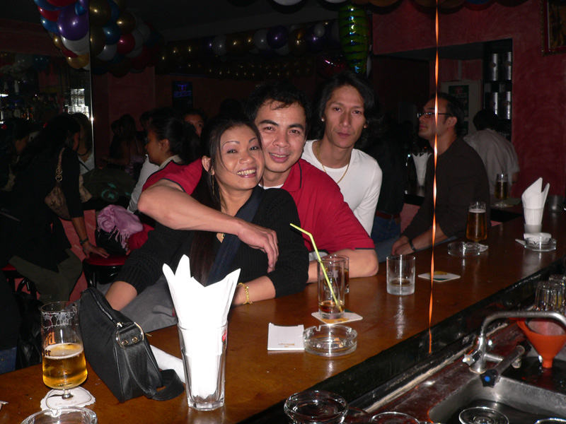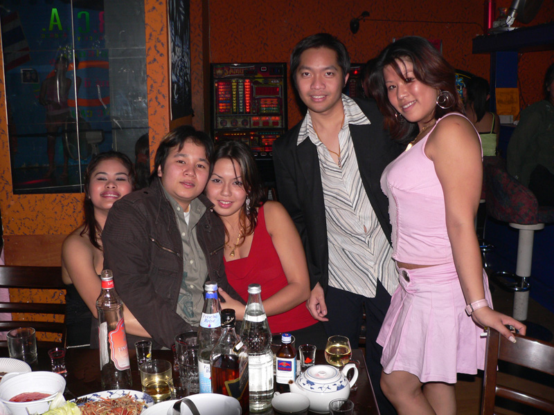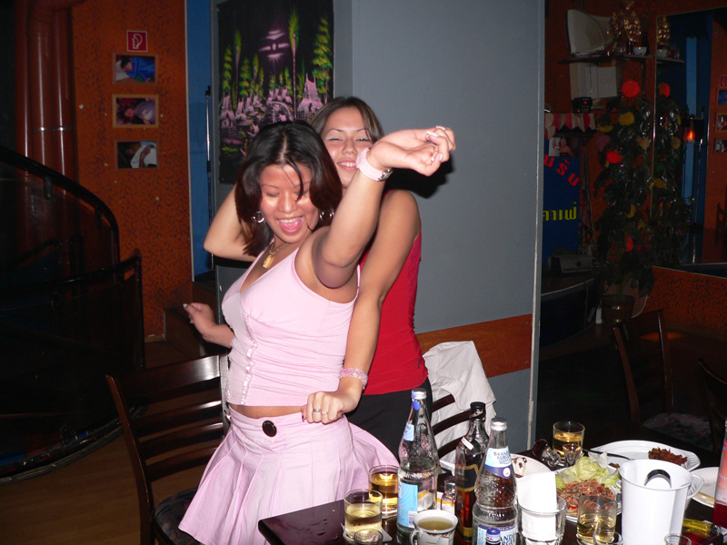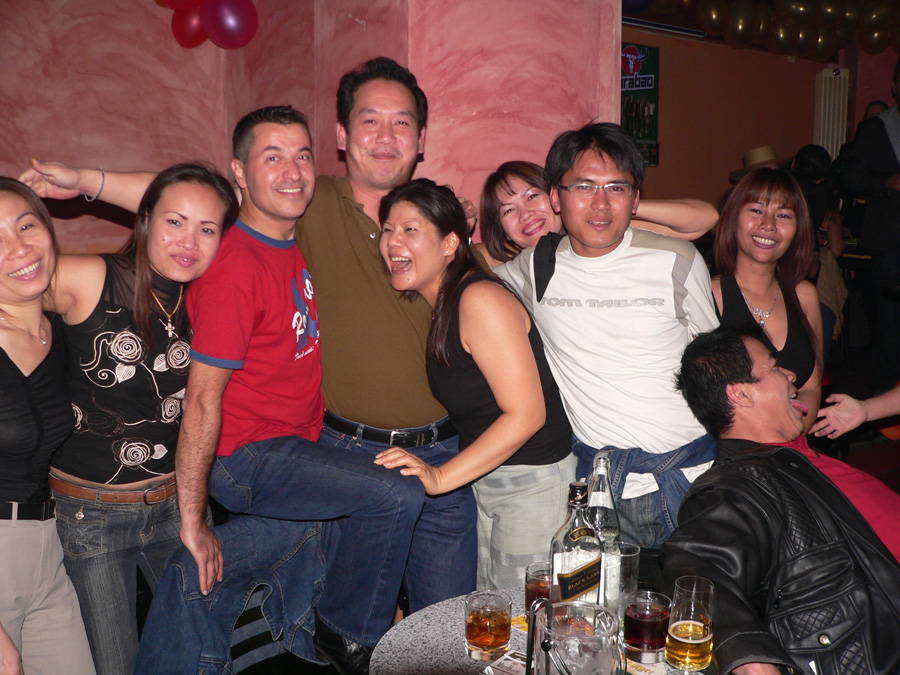 Eddy hat sich mit einer zünftigen Sause im R.C.A. von Berlin verabschiedet. Doch keine Bange, in acht Monaten ist der beliebte Thai-Mann wieder da. Nach dem Happy Birthday Singen und dem Anschnitt der Torte waren dann auch die Mädels ganz aus dem Häuschen. Puy und Schwesterchen Sabina zeigten allen, wieviel Rhythmus in ihren Adern fließt. Dagegen bewahrte Toi die Contenance und blieb wie stets der Lage gewachsen, während Bärchen wie immer ganz der Liebe ist... Mathias Heinrich