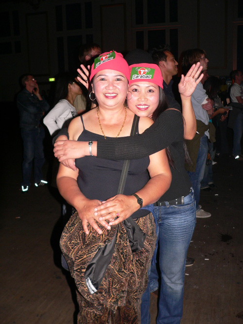 Erschöpft aber gutgelaunt ließen sich CARABAO mit vielen Besucher/innen zusammen für die privaten Alben photographieren. Sehr viele hatten schon während des Konzertes ihre Eindrücke per Handy-Kamera festgehalten.