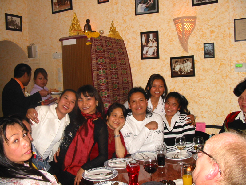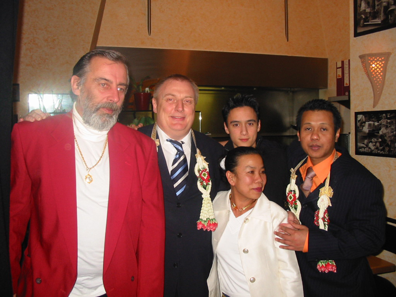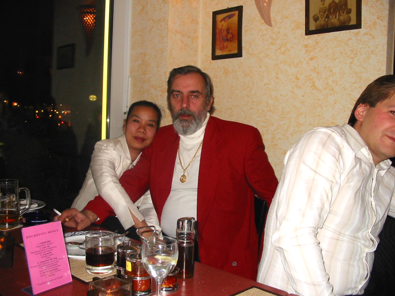 Der Bericht über das neue Thai-Restaurant SAWAD nahe dem berühmten Checkpoint-Charly hatte für Sansawad (Ex-Lahn-Thai und SIAM-Restaurant) mehrere Besuche zur Folge. Gaben sich doch einige Thai die Türklinke in die Hand, die Sawad lange nicht gesehen hatten, darunter Lek (ein ER, war damals im Thai-Restaurant im Estrel Hotel) und Kanokwan (ehemals vom Koh Chang Thai Restaurant auf der Wilmersdorfer). Letztere zog dann mit Sawad weiter zu dem Ching Chong an den Olivaer Platz. Im Schlepptau war Dia vom Bangkok, und dann ging es bis der Hahn krähte. So ist das mit der Presse... Nun kann sich Sawad auch auf fleißige Thai-Hände als Bedienungen verlassen. Als da wären die kleine Fleißige (Ex-Bedienung vom Taleh Thai im Prenzlauer Berg) und immerhin Usa (Ex-Udon in Tegel und Ex-Yasmin im Wedding). Mal sehen, wie sich die Sache da weiter entwickelt... Sawad jedenfalls fährt noch eine andere Schiene. Zusammen mit Trixi vom Kien-du Thai-Restaurant verkauft er braungebratene Bratwürste im Jugendclub KNAACK an der Greifswalder Straße. Nur zwei Mal die Woche und dazu noch nachts. Die braunen Dinger laufen wie toll. Sawad kann sich gar nicht beklagen. Allein schon wegen der vielen hübschen Mädels im Osten. Wie sagt er immer. "Braaatwurscht, so braungebrannt wie Nazi". Das kommt an!