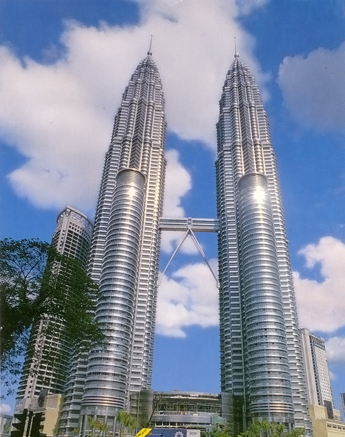 Aber nicht nur das ist Kuala Lumpur. Auch die beeindruckenden Skycraper, allen voran die Petronas Twin Towers, die silbern funkelnd in den blauen Himmel stechen, gehören zu dem Stadtbild. Der Fernsehturm mit seinen 421 Metern Höhe, auf den man für 15 Malaysische Ringgit (Einheimische für 8 RM) hinauffahren kann und von dessen Aussichtsplattform man einen atemberaubenden Überblick über die Stadt hat. Die LRT, eine Mischung aus U-Bahn und Skytrain, die einmal unter den Füßen der Einwohner, einmal über deren Köpfen hinwegbraust. Hindutempel, der Orchideengarten, der tropische Vogel- und Schmetterlingsgarten, der See Yeoh-Tempel, einer der ältesten daoistischen Heiligtümer - und natürlich Moscheen. Dazwischen die prunkvoll verzierten Kongsi: Clanhäuser der chinesischen Einwanderer. Ja, auch das ist Kuala Lumpur.