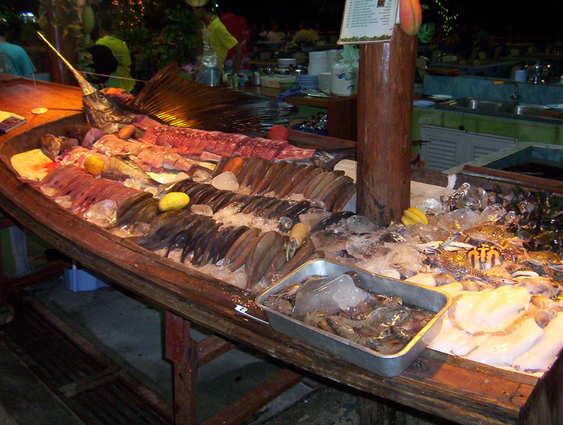 - Immer samstags machen wir unsere Grillparty. Für nur 149 Bath kannst Du alles essen: Steak und Salatbuffet. Abends dann Fußball live.