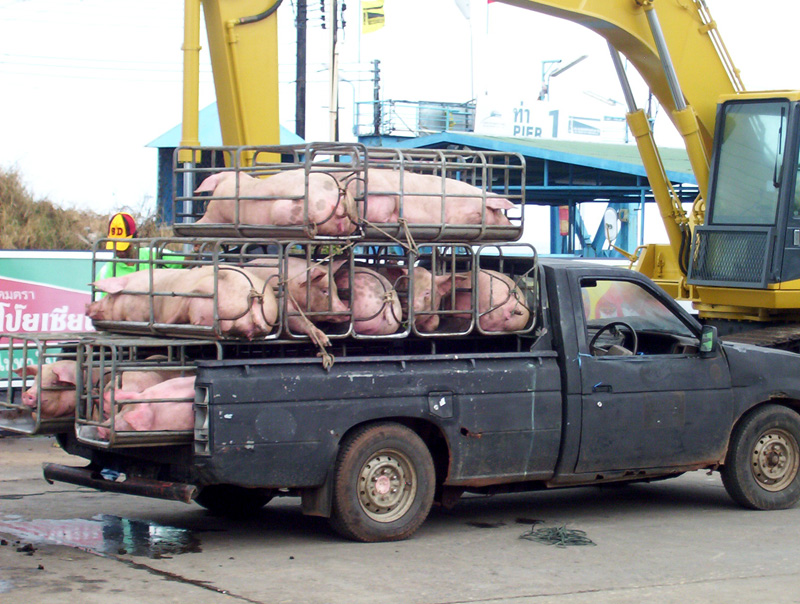 Der Abschied von Pulau Langkawi fällt uns nicht sonderlich schwer, erneut besteigen wir ein Speedboat, diesmal gilt es Technomusik und Promotionvideos von Computerspielen zu ertragen. Nach knapp einer Stunde (minus einer Stunde Zeitumstellung) legen wir in Satun, auf der thailändischen Seite der Grenze an, lassen die Aus- und Einreiseprozeduren über uns ergehen und machen uns sogleich auf den Weg zu einem PickUp-Taxi, das uns in die nächste größere Stadt mit Bahnhof bringen soll. Nach zähen Preisverhandlungen sitzen wir dann endlich mit einem Japaner und seiner indischen Freundin und einer fünfköpfigen norwegischen Familie auf der überdachten Ladefläche des Kleintransporters und nähern uns unserem nächsten Ziel: Hat Yai!