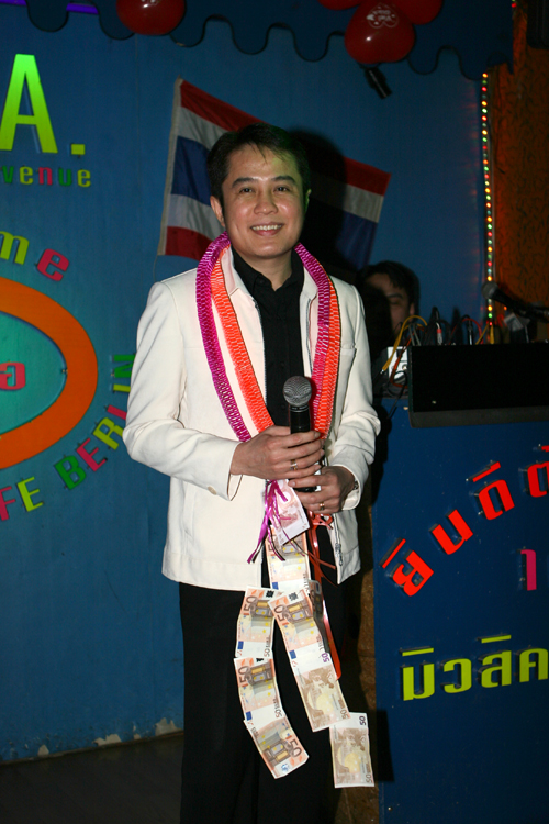 Das THAI MEX ist eine Geschichte ohne Ende. Gerade war mit Tens Birthday Party eine durfte Veranstaltung im zuletzt ansehnlich gewordenen Laden in der Lüderitzstraße zelebriert worden und nun ist plötzlich zu. Es war also doch der Lärm! Hat er etwa aufgegenen? Aber da kennen wir unseren Suleimann nicht richtig. Er ist nur umgezogen in neue schöne Räume in der Pankstraße. Das ist im Prinzip schräg gegenüber von Möbel Höffner. Ein paar Häuser links vom Taifun, gleich auf der Ecke. So wird die Pankstraße nach der Kantstraße immer mehr zu einem weiteren Thai-Zentrum in Berlin. Als da wären: Viengthai, Thailand Asia Markt, Mae Ploys Kitchen und die anderen beiden kleinen Geschäfte nebenan. Ihr wisst schon. Alles da. Zurück zum MEX: Der große geräumige Laden war vorher schon ein Musik-Café anderer Nationalitäten. Oben in den Wohnungen befinden sich nur Büros. Da wird es hoffentlich keine Polizeibesuche mehr wegen der Lautstärke geben. DJ ist Cee und am Tresen vorerst nur Puna. Weitere Leute kommen noch. Das neue Thai Mex ist schon seit Anfang März geöffnet, feiert aber seine offizielle Eröffnung am 9. April mit einem zünftigen Fest. Bis dahin wird gewerkelt und alles auf Feinschliff gebracht. Wie gesagt, bei laufendem Betrieb. Das kennen wir ja schon. Und der Clou des neuen Thai Mex sind seine Öffnungszeiten: täglich rund um die Uhr. Na dann, mal hingehen und schauen. Ach so, bald vergessen: Nang, die Chefin und Sülows Partnerin, ist sehr guter Hoffnung seit vier Monaten. Na, da freuen wir uns doch auf einen munteren kleinen Osmanen in der Gemeinde. Freut sich auch der Wackere auf seinen türkisch-thailändischen Mix. Dazumal dieser oder diese dann so exotisch und hübsch aussehen kann wie die Tochter von Butterfly-Ali.