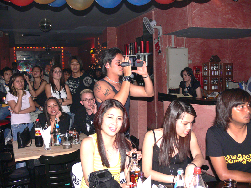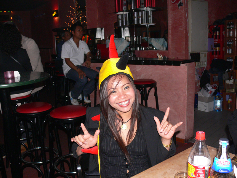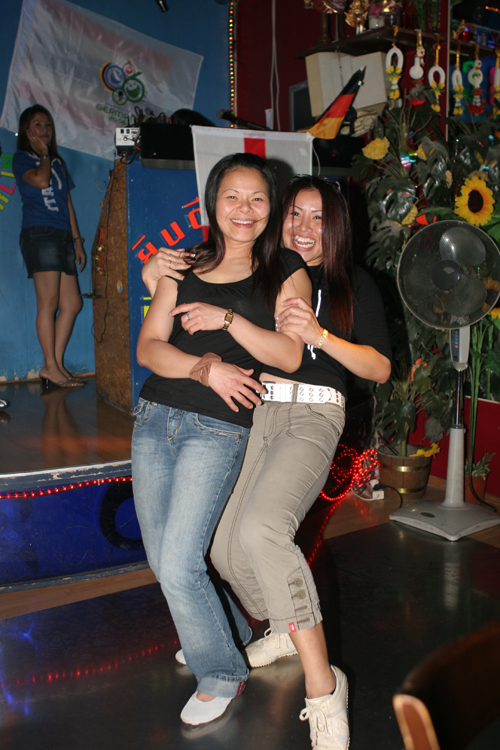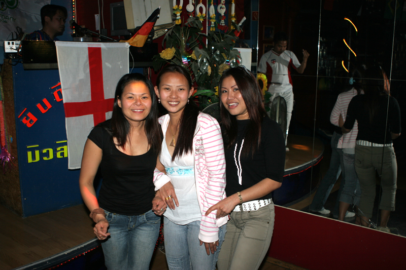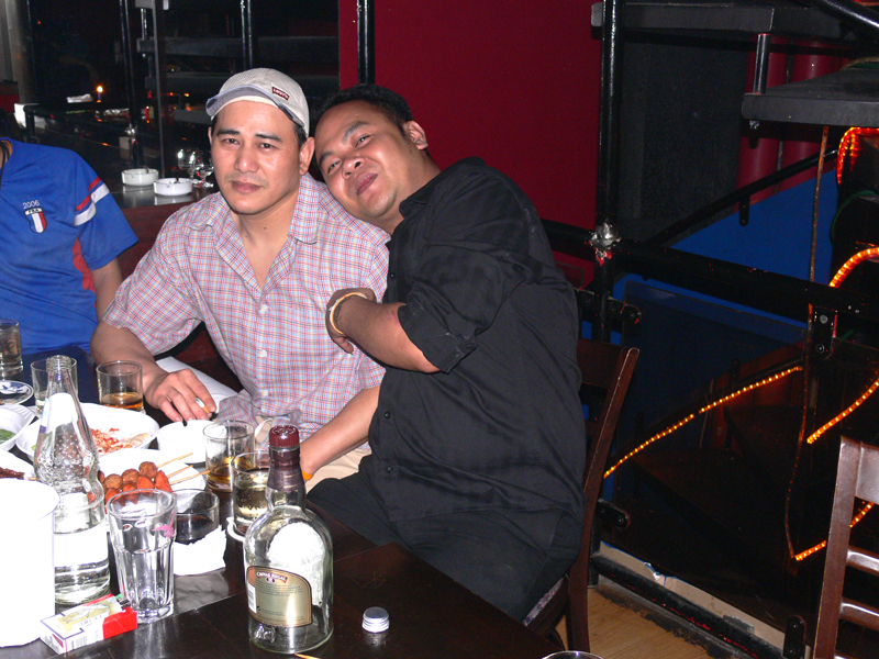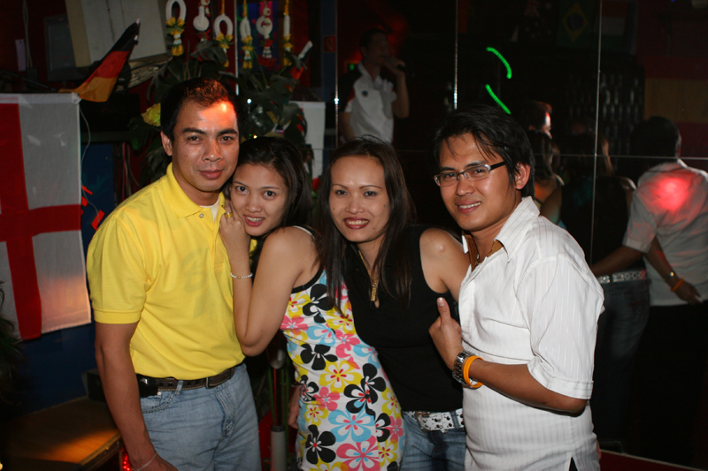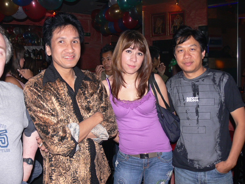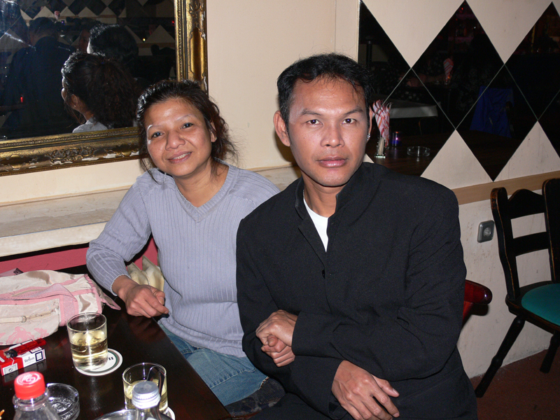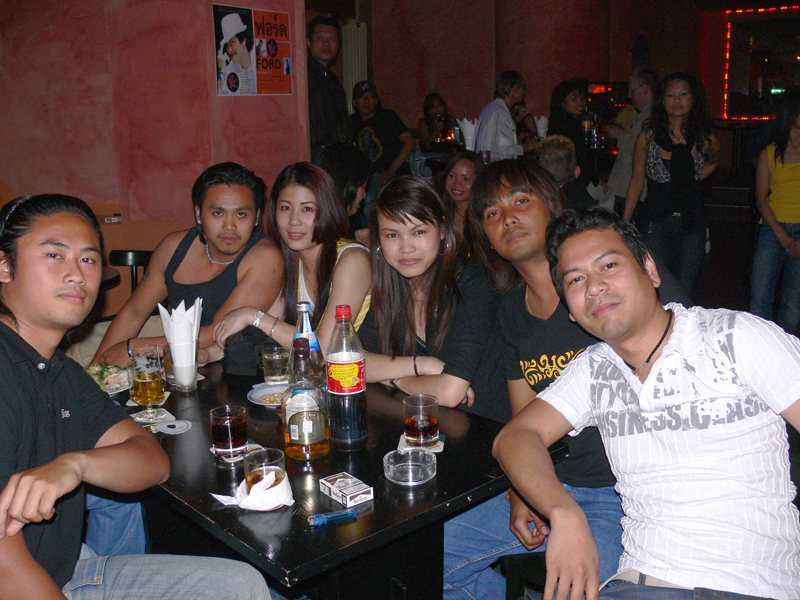 Puna bedient in der STARS Disco, vorne freut sich Pu von der KRABI-Thaimassage.
