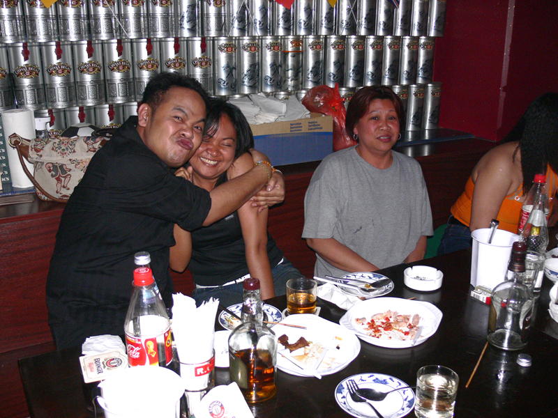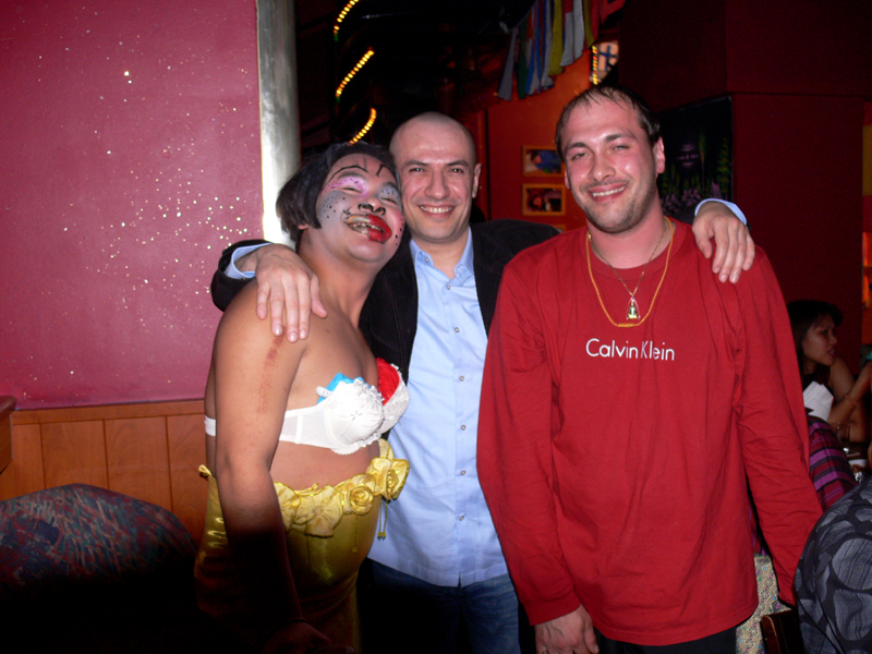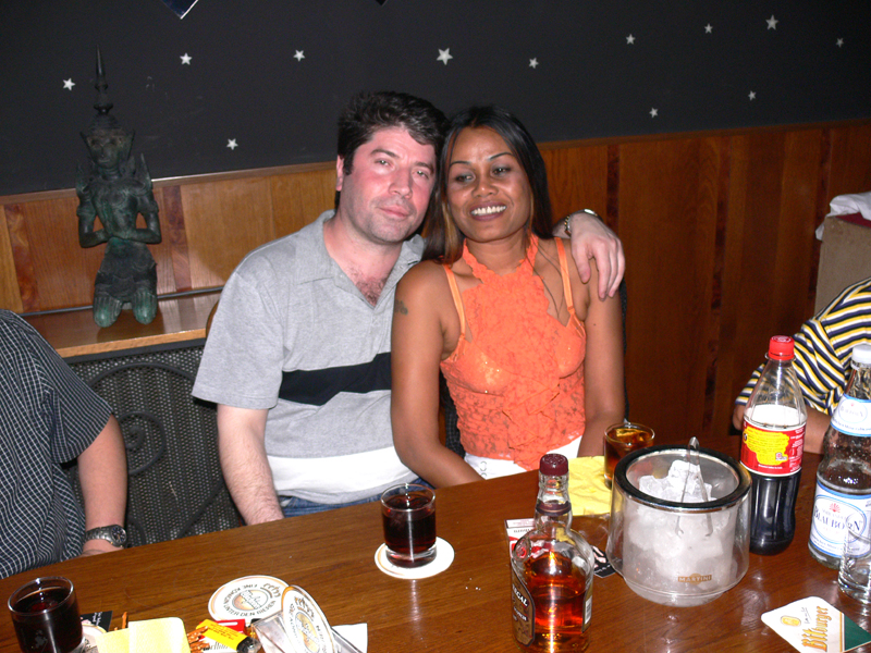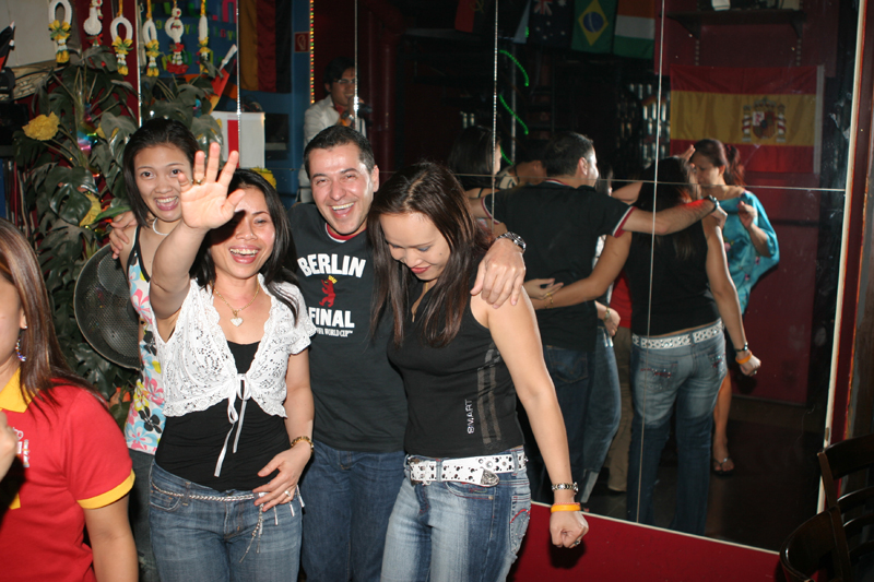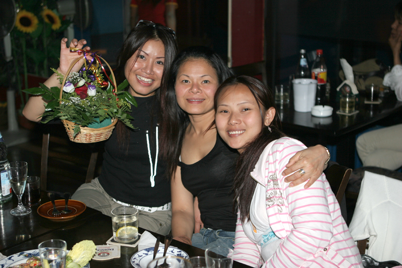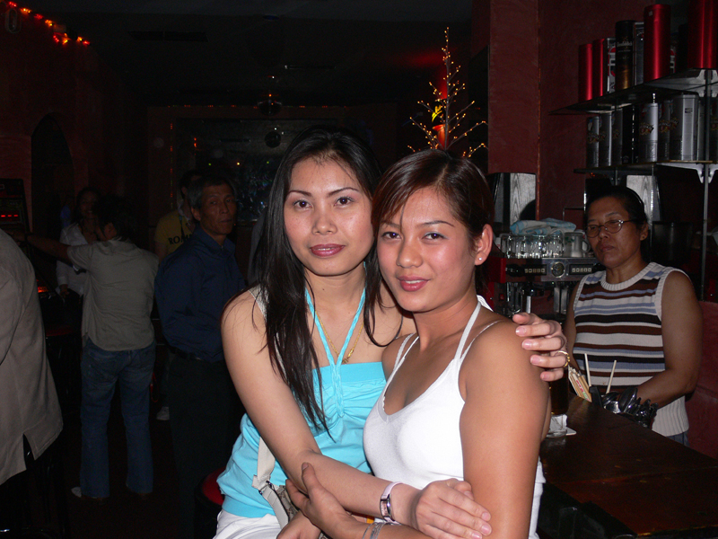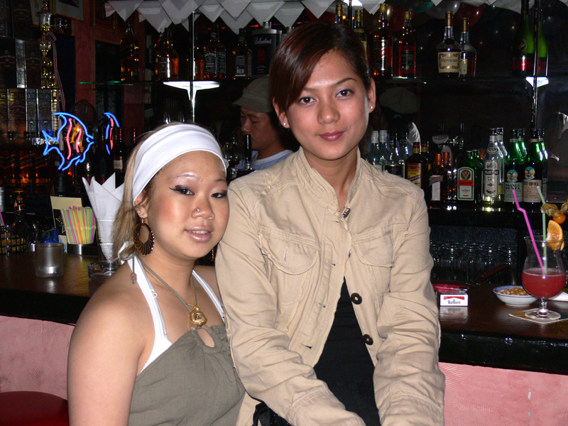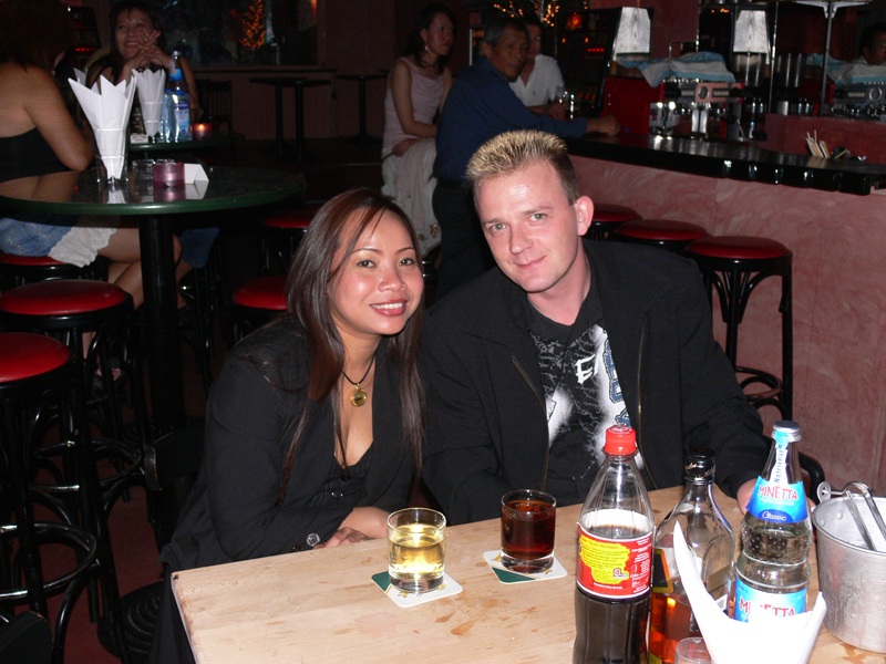 Puna bedient in der STARS Disco, vorne freut sich Pu von der KRABI-Thaimassage.