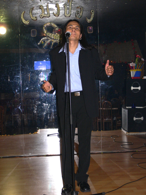 Seit Sombat die musikalische Regie im Scorpion übernommen hat, geht es gewaltig vorwärts mit dem Thai-Musik-Café im Berliner Wedding. Viele Sänger, nette Bedienungen, eine gute Show und überhaupt. Am 13. Juni gaben sich gleich drei beliebte Gast-Sänger das Mikro in die Hand. Zwei singende Schauspieler (Dong Setiporn und Dan Pichethai) sowie der Sänger Jui Patamawan. Das Konzert begann richtig spät (02.00 Uhr) und artete naturgemäß zu einem regelrechten Foto-Shooting aus. Wie man sieht, mit viel Sanuk.