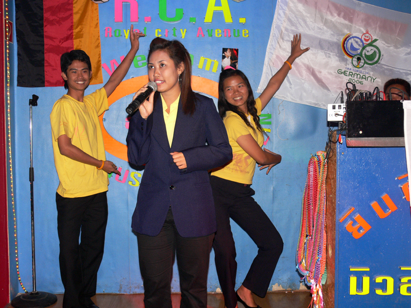 Schon am 27. Mai fand in der STARS Discothek eine Asia Night mit großem Karaoke-Wettstreit statt. Nun lieben Thai das Singen vor Publikum über alles. Deshalb war die Party gut besucht. Es gab ein feines Buffet, den Sänger-Contest, viele Gewinnspiele und eine pralle Comedy Show. Die Jury wurde von Meau, Edd und Bancha gestellt. Siegerin nach mehreren Runden wurde Tek. Liebling des Publikums wurde Yad. Den Hauptpreis der Tombola gewann Lek (1 Baht Goldkette). Ihr Wan von Laos wurde Nr. 4. Edd legte Wert auf Fotos für die Thai Rath. DJ Cee gab gekonnt seinen Einstand. Und Sabina kam erholt und toll aussehend aus Thailand. Das Highlight der Show war die Körper-Bemalung mit Leuchtfarben und das bei UV-Licht. Echt stark. Mathias Heinrich.
