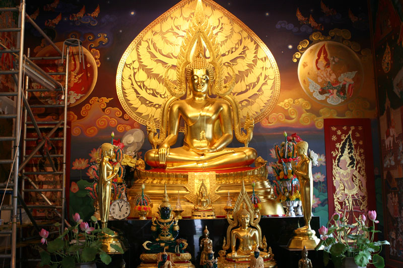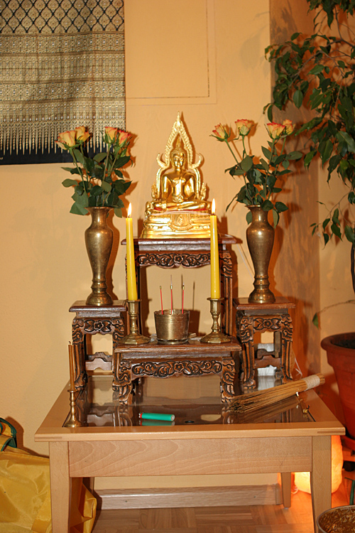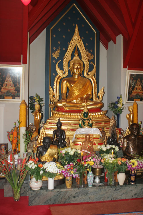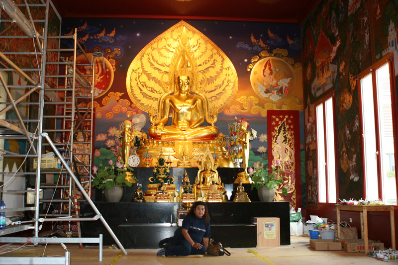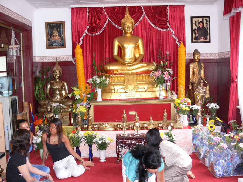 Vor dem Buddha im Wat Buddhavihara in Wittenau
