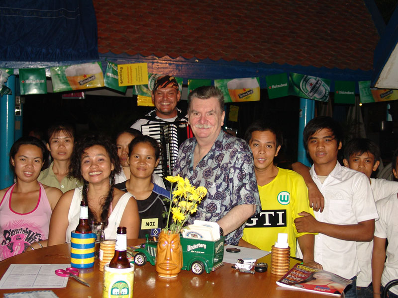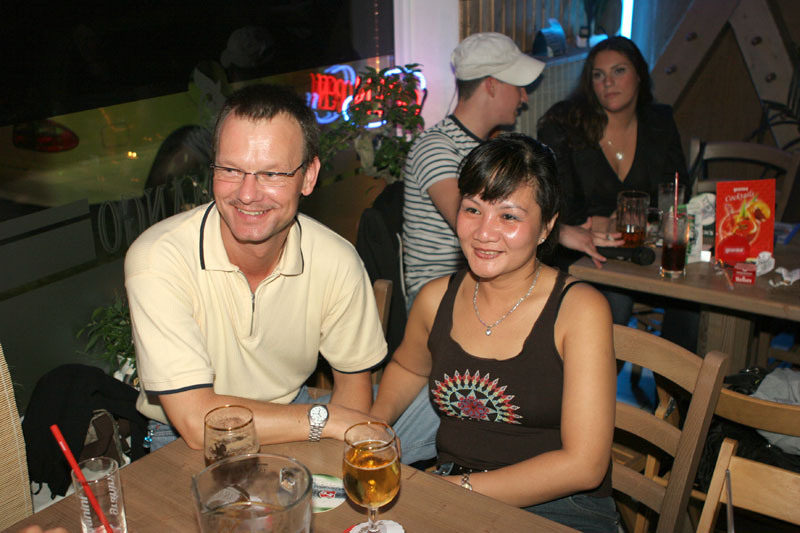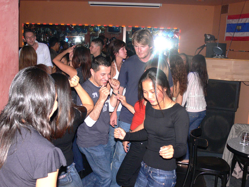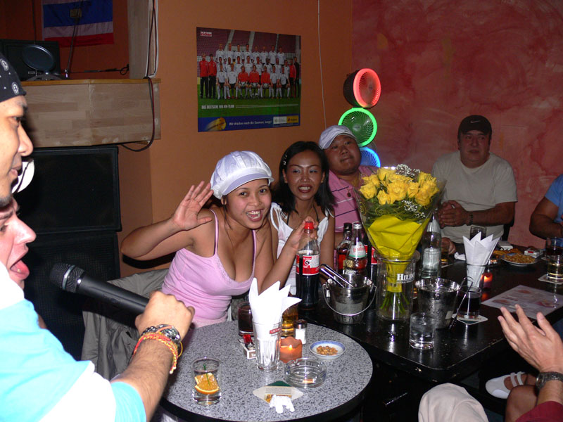 Gegen 23.00 Uhr war nach längerer Zeit mal wieder ein Besuch im R.C.A. in der Schierker Straße angesagt (siehe Fotoleiste rechts). Hat mir doch jemand geflüstert, dass ein bekannter Thai-Sänger vorübergehend dort seine Stimme erhebt. Stimmt! Nach dem Motto: Mit der Klampfe in der Hand sing ich mich durchs ganze Land. Aber Spaß bei Seite: wirklich, der Junge spielt klassische Gitarre, die an einen Verstärker angeschlossen ist. Seine Kehle umfasst die ganze Notenskala. Sein Repertoire beinhaltet thailändische und englische Lieder. Dementsprechend heftig war auch die Party, die ohne besonderen Anlass gefeiert wurde. Ausgelassen getanzt auch mit Lilly, der freundlichen Chefin. War einfach prima.