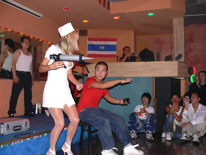 Nin feierte am 2. August eine pralle Birthday-Party im neuen Khao San Road von DJ Cee. Das ist das umgewandelte Butterfly. Aus dem einst legendären Thai-Musik-Café mit Sängern ist nun eine kleine Thai-Discothek geworden. Der Party-Bericht kommt aber erst in der nächsten Ausgabe. Dann ausführlich.