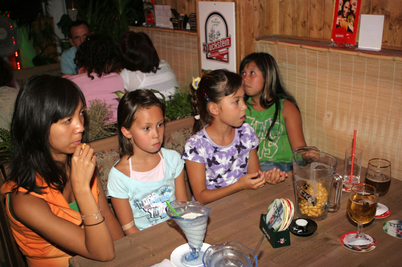 Die Karaoke-Maschine wurde angeschmissen, und es wurde abgerockt bis um 02.00 Uhr nachts. Gefeiert wurde drinnen und draußen. Um 20.00 Uhr gab es ein zweites riesiges Buffet. Gut, dass wir einen Pauschalpreis auch für die Getränke hatten. So floss der Alkohol in Strömen, und es konnte keine Unstimmigkeiten bei einer anschließenden Rechnung geben. Das kann ich nur jedem empfehlen.