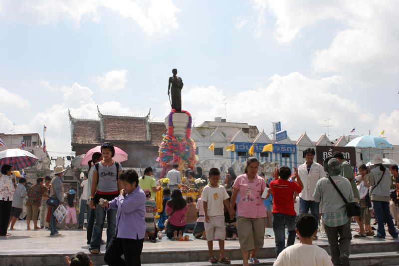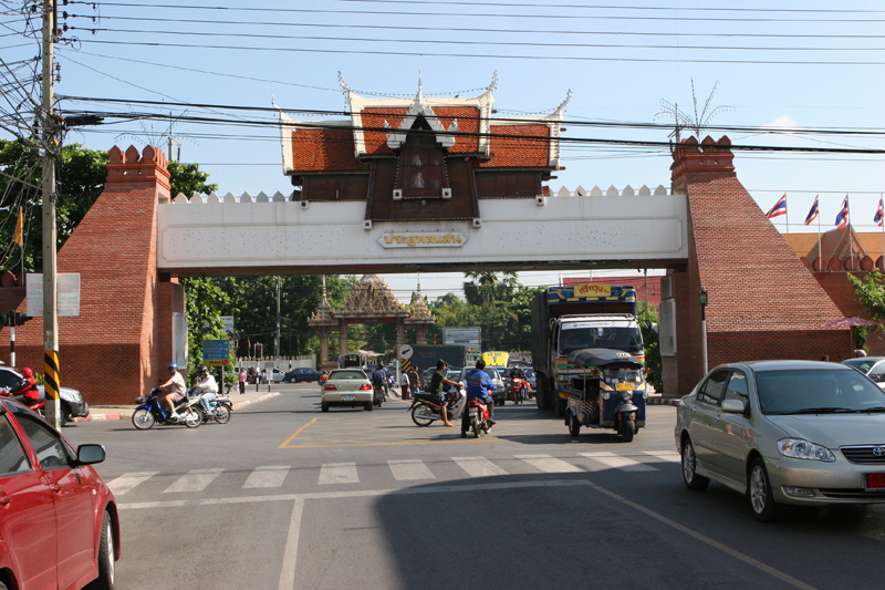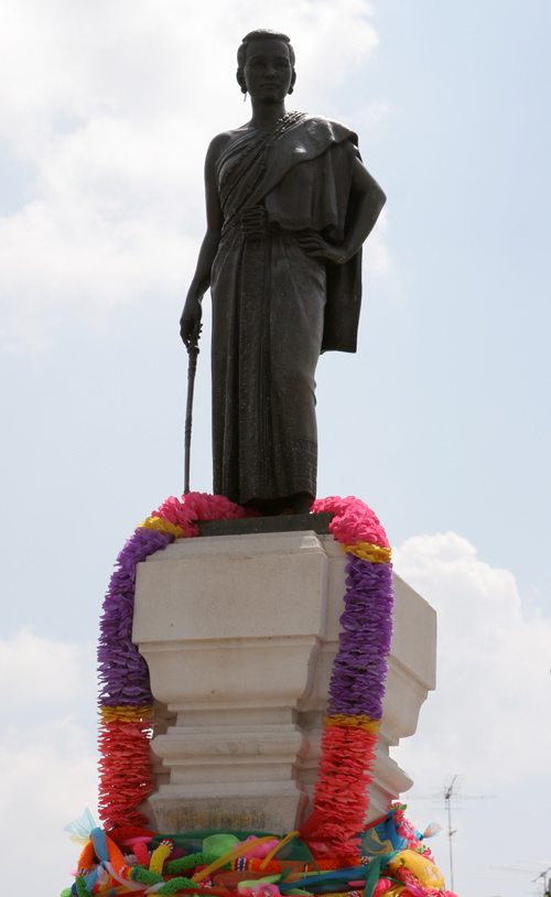 Landschaftlich hat die Region nicht viel zu bieten, da auf Grund der tropischen Temperaturen nur karge Vegetation herrscht. Die Straßen wurden im Laufe der Jahre ausgebaut, so dass man sich in alle Richtungen gut fortbewegen kann, egal ob mit dem Auto, dem Moped oder der Buslinie. Die Stadt verfügt über einen riesigen Busbahnhof, eine Eisenbahnstation und einen Militärflughafen, von dem die Thai Airways täglich nach Bangkok fliegt. Ansonsten halten die Kampfjets unregelmäßig ihre Übungen ab. Trotz der kulturellen Sehenswürdigkeiten ist Korat nicht die typische Touristenstadt. Zwar haben sich inzwischen etliche Farangs hier niedergelassen (die Heißgeliebte hätte ja auch aus einer anderen Stadt kommen können), aber der große Besucherstrom hat bisher nicht stattgefunden. Die einzigen Touris, die in Gruppen kommen, sind die Amerikaner, die während der Truppenübung mit den Thais in ihrer freien Zeit dem Bier zusprechen. Der geneigte Leser erinnert sich diesbezüglich daran, dass die US-Air Force während des Vietnamkrieges in Korat ihren Stützpunkt hatte und Einsätze gegen Nordvietnam und Kambodscha geflogen ist. Von hier aus wurde auch ein Erholungsort für die Soldaten gesucht und das damals noch kleine verträumte Pattaya entdeckt. Der wichtigste und zentrale Punkt Korats liegt im Stadtkern. Das Thao Suranari Denkmal wurde 1934 errichtet und ehrt die Frau des damaligen Gouverneurs in der Zeit des Königs Rama III. Ein Korater erzählte dazu folgende Legende: 1826 war Krieg. Die Laotische Armee unter König Anuwong stand praktisch schon vor den Stadttoren. Wegen des Männermangels fasste Khun Ying Mo einen für den Feind folgenschweren Entschluss: Sie rief alle Frauen, die Bekannten und Verwandten auch, zusammen und ließ alle Schnapsvorräte mitbringen. Mit Alkohol und weiblichem Charme bewaffnet zogen die Damen ins gegnerische Lager. Der Hochprozentige und die strahlenden Augen der Weiblichkeit verdrehten den laotischen Kriegern recht bald die Köpfe bis hin zur Bewusstlosigkeit (Mann, bis hier kommt mir einiges bekannt vor). In diesem Zustand hatten die Korater leichtes Spiel. Die Stadt ist nicht erobert worden. Hinter dem Denkmal für Khun Ying Mo befindet sich einer von vier Torbögen. Von diesem wird gesagt: Wer einmal hier durchläuft kommt immer wieder (der Autor dieser Zeilen ist zu seiner Schande noch nicht hier durchgelaufen, war aber schon zum x-ten mal hier).