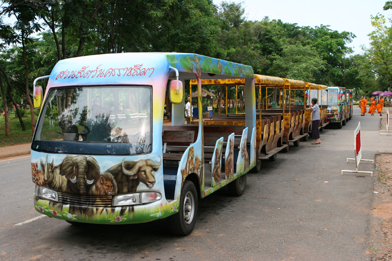 Außerhalb von Korat ist für Naturinteressierte ein Besuch im Khao Yai Park ein Muß. Der über 2.000 Quadratkilometer große Nationalpark ist ein bergiges Naturschutzgelände mit entsprechender Tierwelt. Leben hier doch tatsächlich noch Tiger in freier Natur. Auch vor schlängelnde Schlangen ist man nicht unbedingt sicher. Die Wasserfälle Pak Thong Chai und Khlon Ki werden vom Staudamm Lam Phra Phlong genährt. Übernachtungsmöglichkeiten sind vorhanden und können im Reisebüro bzw. vor Ort gebucht werden. Für den Besuch im Zoo, der vor sechs Jahren seine Pforten aufschloss, nimmt man sich ein wenig Zeit mit. Er liegt etwa 12 Km entfernt. Das riesige Gelände beherbergt Tiere etlicher Gattungen. Laufen braucht der Besucher nicht. Es fährt (gegen kleines Entgeld) eine elektrische Bahn auf Rundkurs. Ein- und Aussteigen kann man an den vorgesehenen Haltestellen. Über die Robbenshow freuen sich besonders die Kinder.