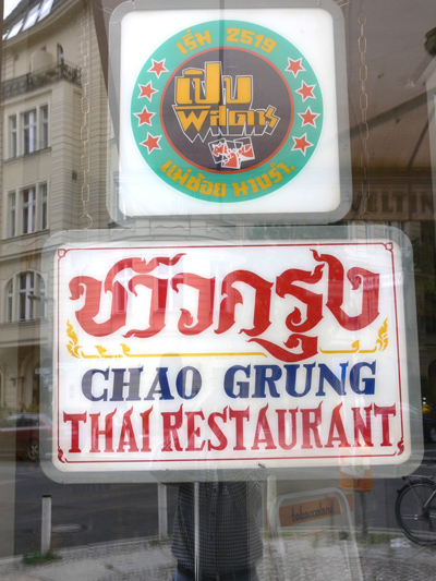 Und gerade rief Udo an und kündigte gar die Wiedereröffnung des alten Bangkok in der Sonnenallee für den 24. August an. Neugierig ein paar Thai sofort hin. Und wer steht hinter dem Tresen? Na, eine Thai mit dem wunderbaren Namen Dung Ding. Demnächst vielleicht auch wieder Meau. Abwarten und viel Tee trinken.