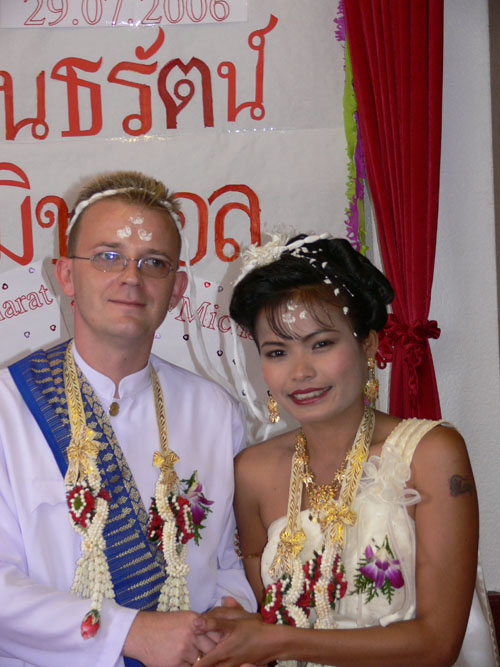 Am 29.07.2006 war es endlich so weit. Wir, das sind Noi (richtiger Name Phantarat) aus Kanchanaburi und Michael (37, sehe aber jünger aus) aus Berlin gaben uns das "Ja!"-Wort nach buddhistischem Brauch im Wat Buddhavihara