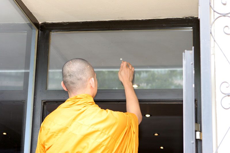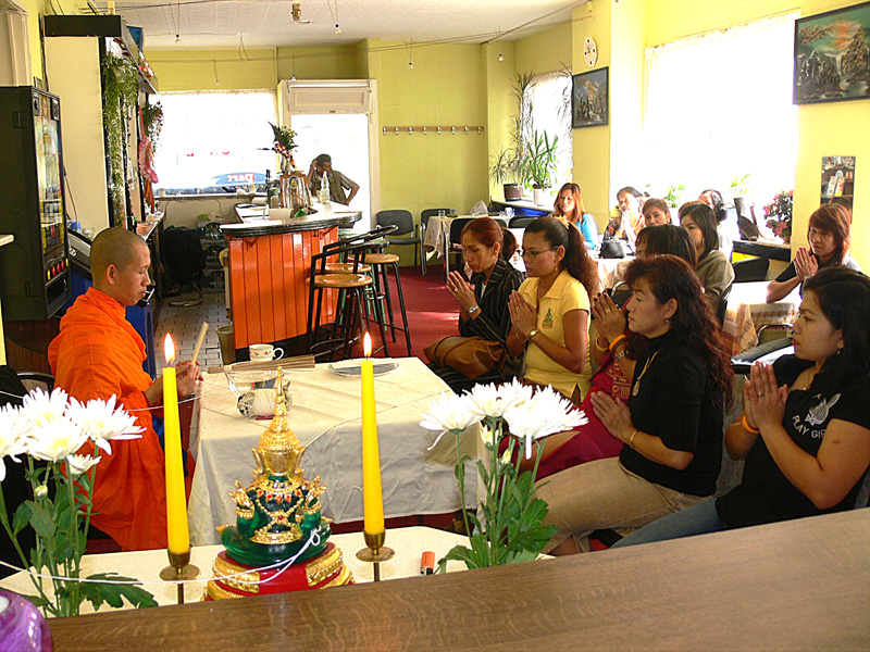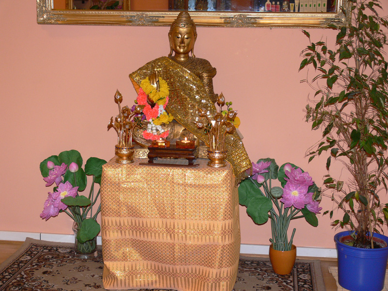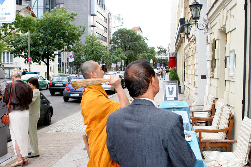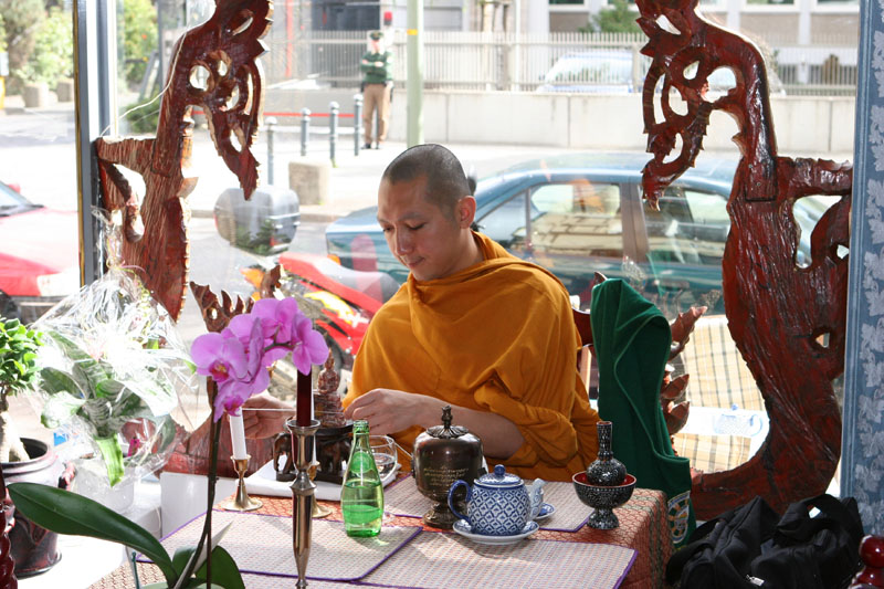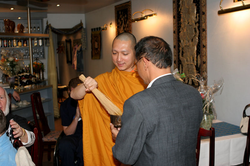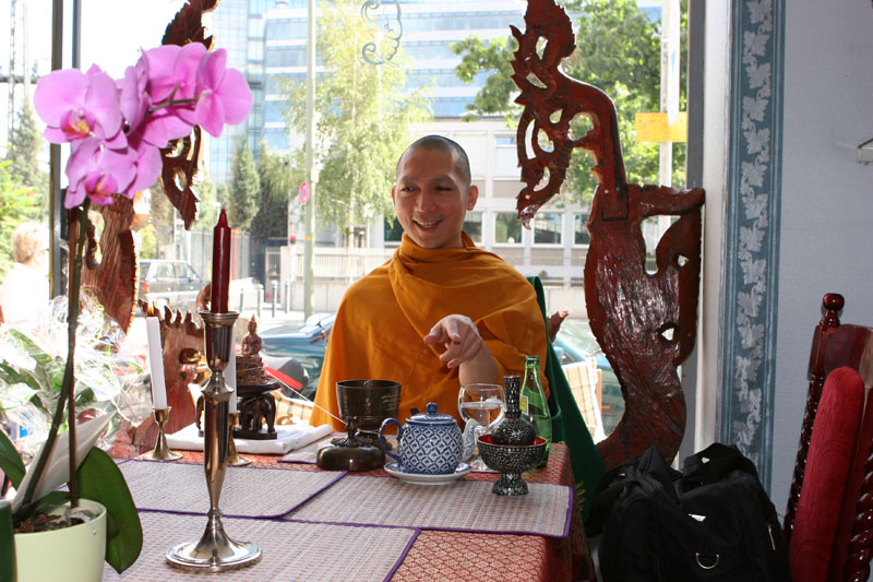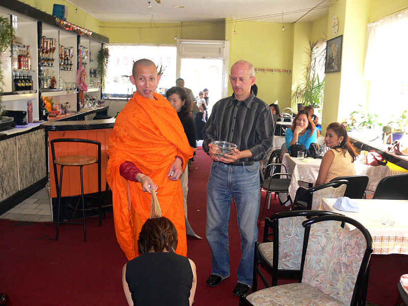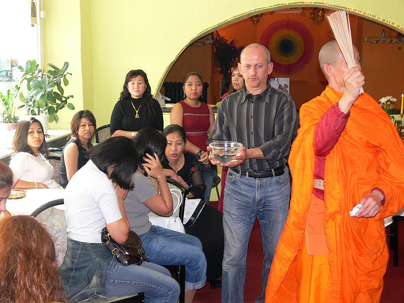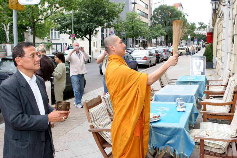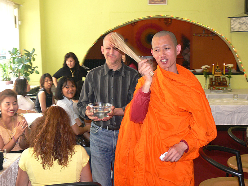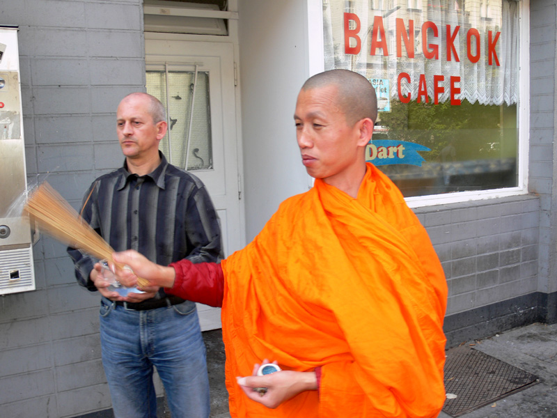 Die Einweihung nahm der Mönch Maha Anusak vom Wat Buddhavihara (Berlin-Wittenau) vor. Der 36-jährige Mönch ist schon im Alter von 13 Jahren in einen Tempel eingetreten. In Berlin lebt er seit acht Jahren.