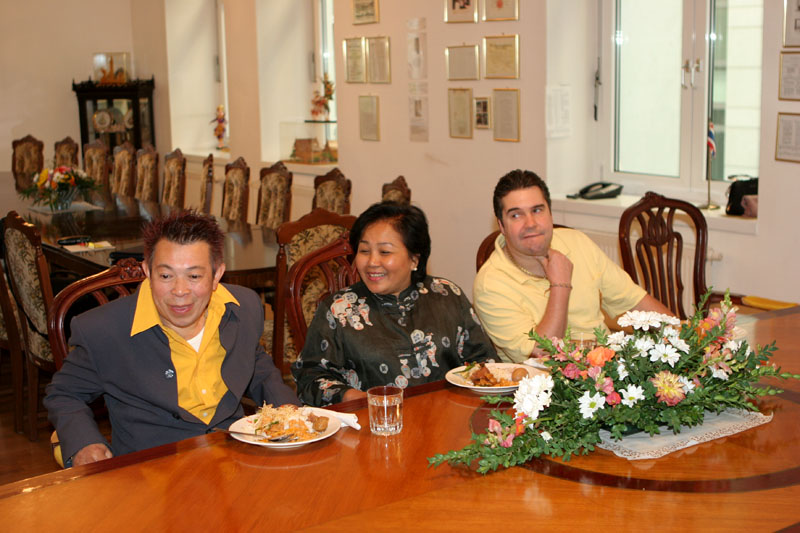 Am 8. September 2006 gab der neue Konsul, Pinthep Devakula, in der Königlich Thailändischen Botschaft in Berlin-Steglitz einen kleinen Empfang. Die Botschafterin, Ihre Exzellenz Cholchineepan Chiranond, übergab nach einer Rede an dessen Gattin einen Blumenstrauß. Der Diplomat wurde in der Stadt willkommen geheißen. Das galt natürlich auch für seine reizende Familie. Beim Empfang war der Zweite Botschafter zugegen. Geladen waren auch Gäste, darunter Dao und Thomas Zimmermann, Edd, Dum und der FARANG-Herausgeber.