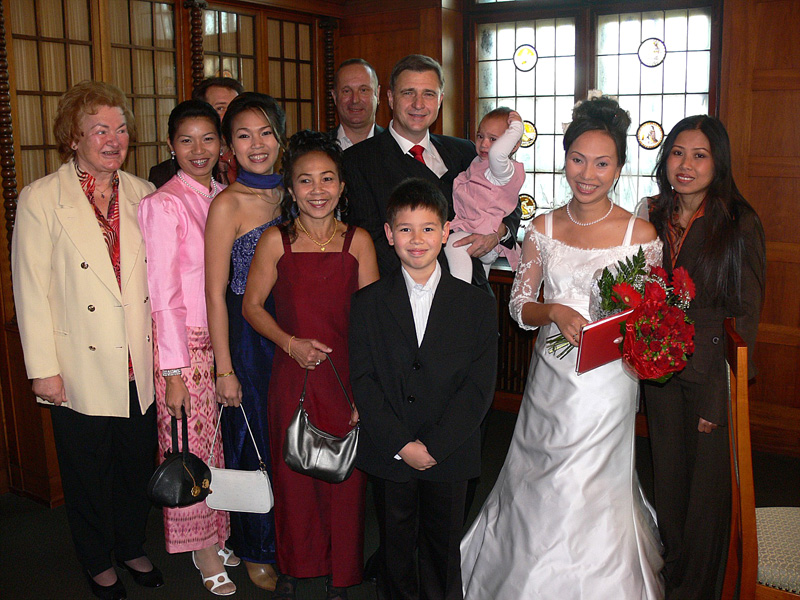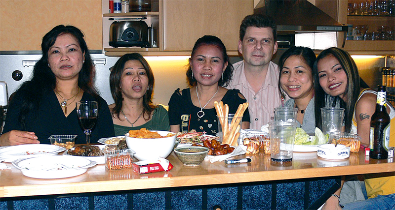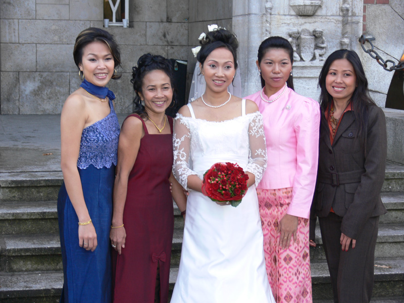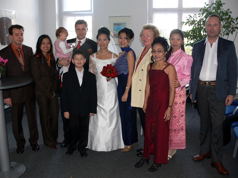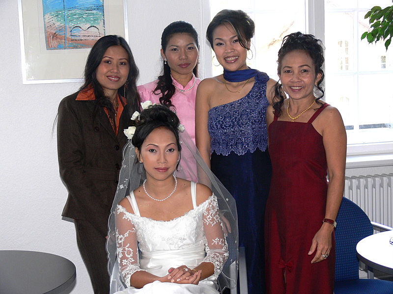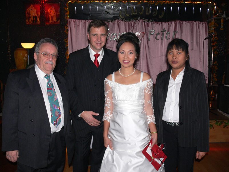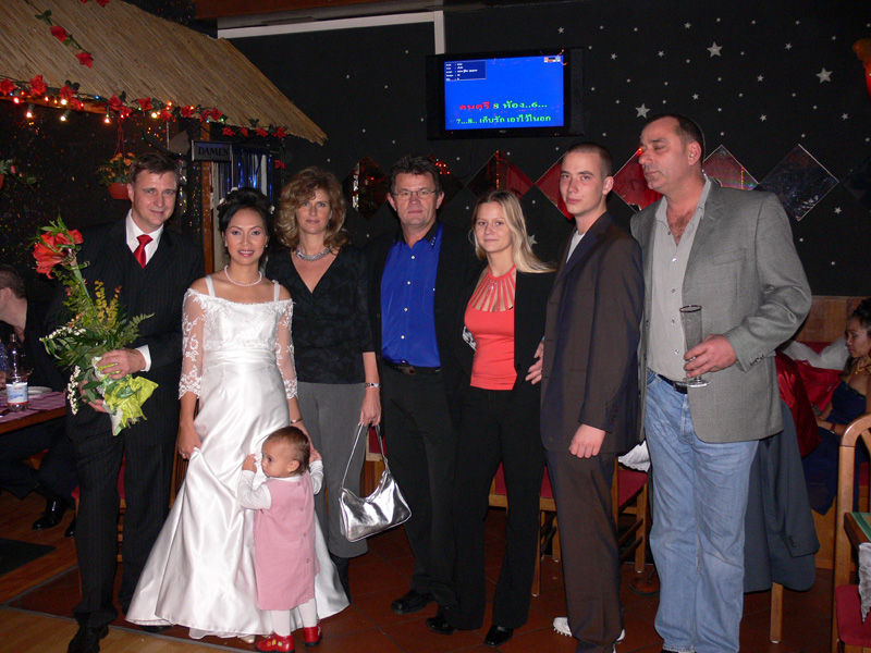 Gäste der Hochzeits-Party waren die in der Thai-Szene gut bekannten Pärchen Lucky & Claus, Nee & Olaf sowie Rung & Jörg. Natürlich auch Pats Schwester Dee mit ihrem Mann Heiko und ihre Freundinnen Nug, Daeng und Nut. Pats Tante Manit kam mit ihrem Mann Brian extra aus England angereist.